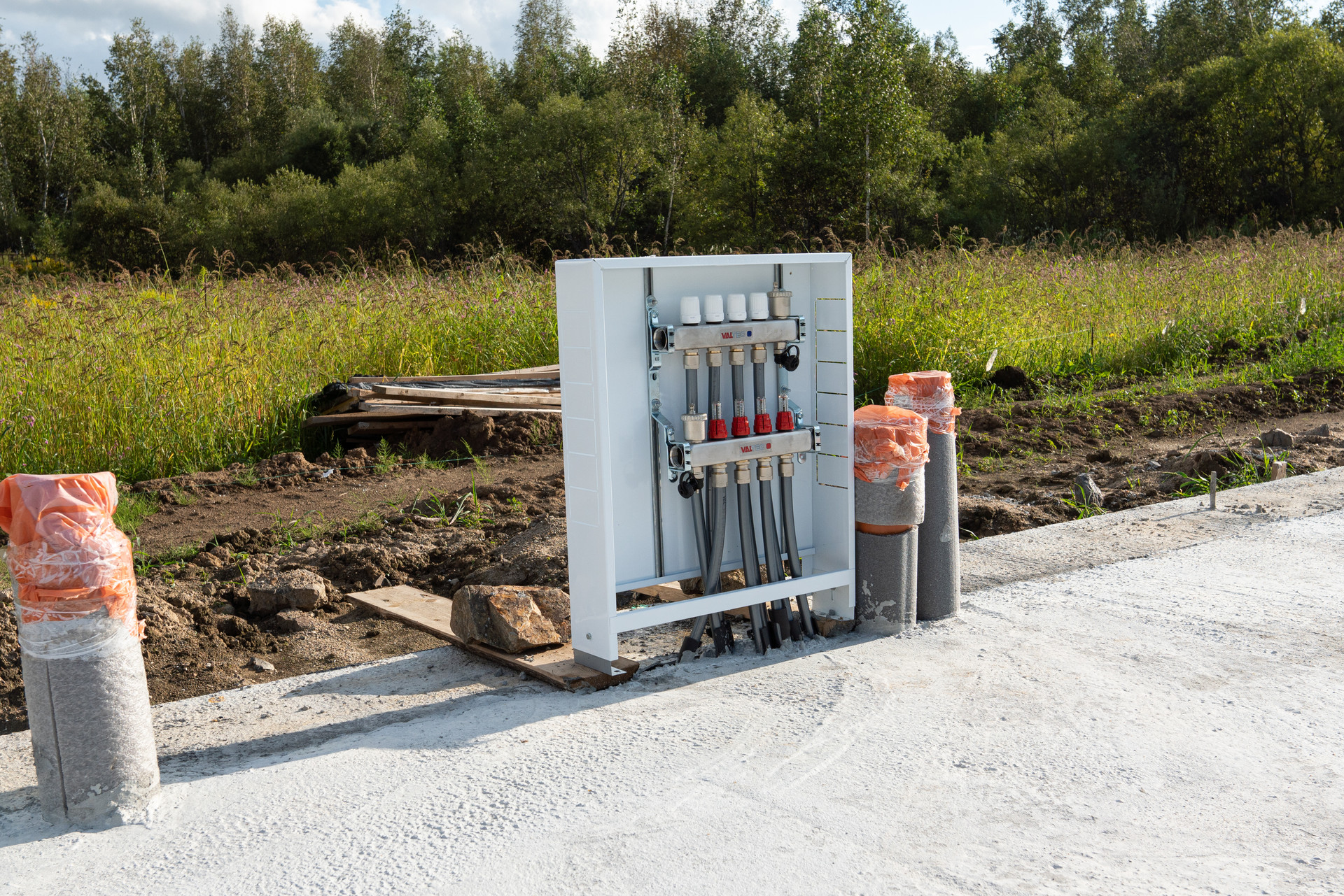 В наших домах реализуется комбинированная система отопления (теплый водяной пол + радиаторы). Для чего и то и другое? - все просто, жидкость в стяжке не рекомендуется нагревать свыше 30 °C, это пагубно влияет на срок службы стяжки, напольного покрытия. Таким образом, полы нагреваются максимум до 30 °C, при необходимости дальнейшей нагрев помещения производится посредством радиаторов. Переключение между нагревом теплых контуров происходит автоматически, с помощью специальной автоматики, умного электрокотла, предусмотренных в каждом доме.