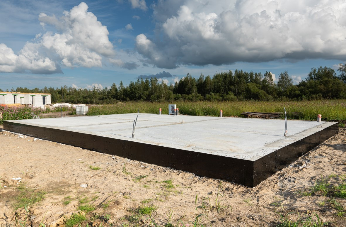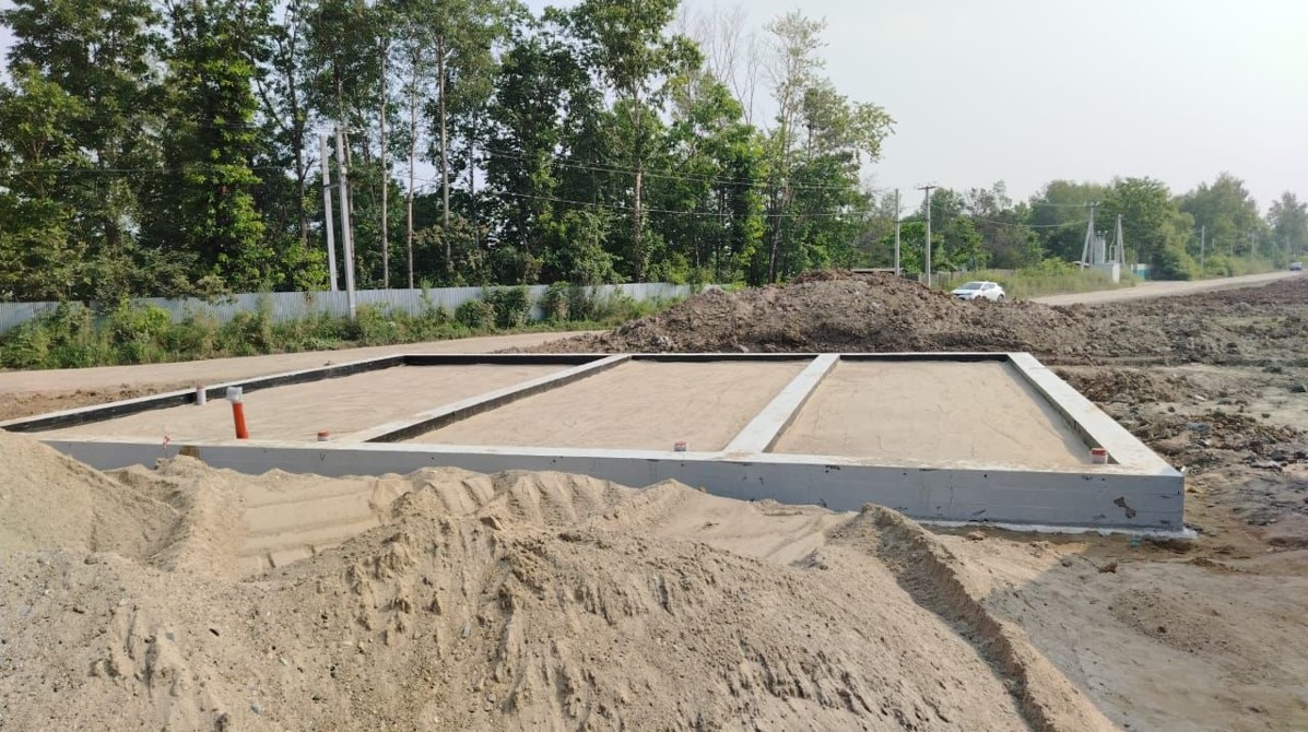 Ростверк с буронабивными сваями (D=300 мм, H= 3,5 м.), с шагом в 2 м. Внутрь ленты выполняется отсыпка песком, далее выполняется уплотнение в несколько этапов, утепление экструдированным пенополистиролом (50 мм) - армирование и заливка плиты. Каждый фундамент оборудован дренажной системой!