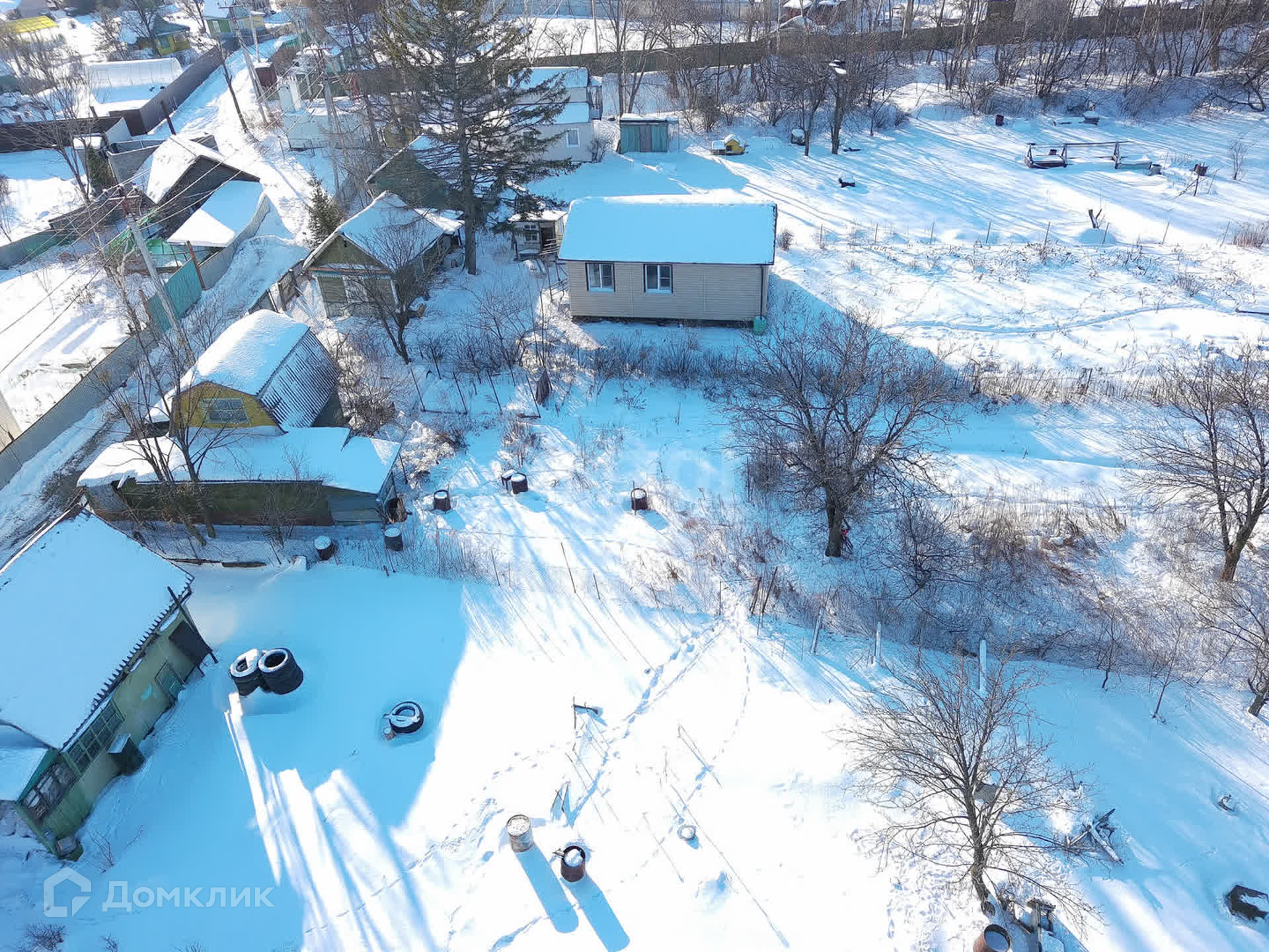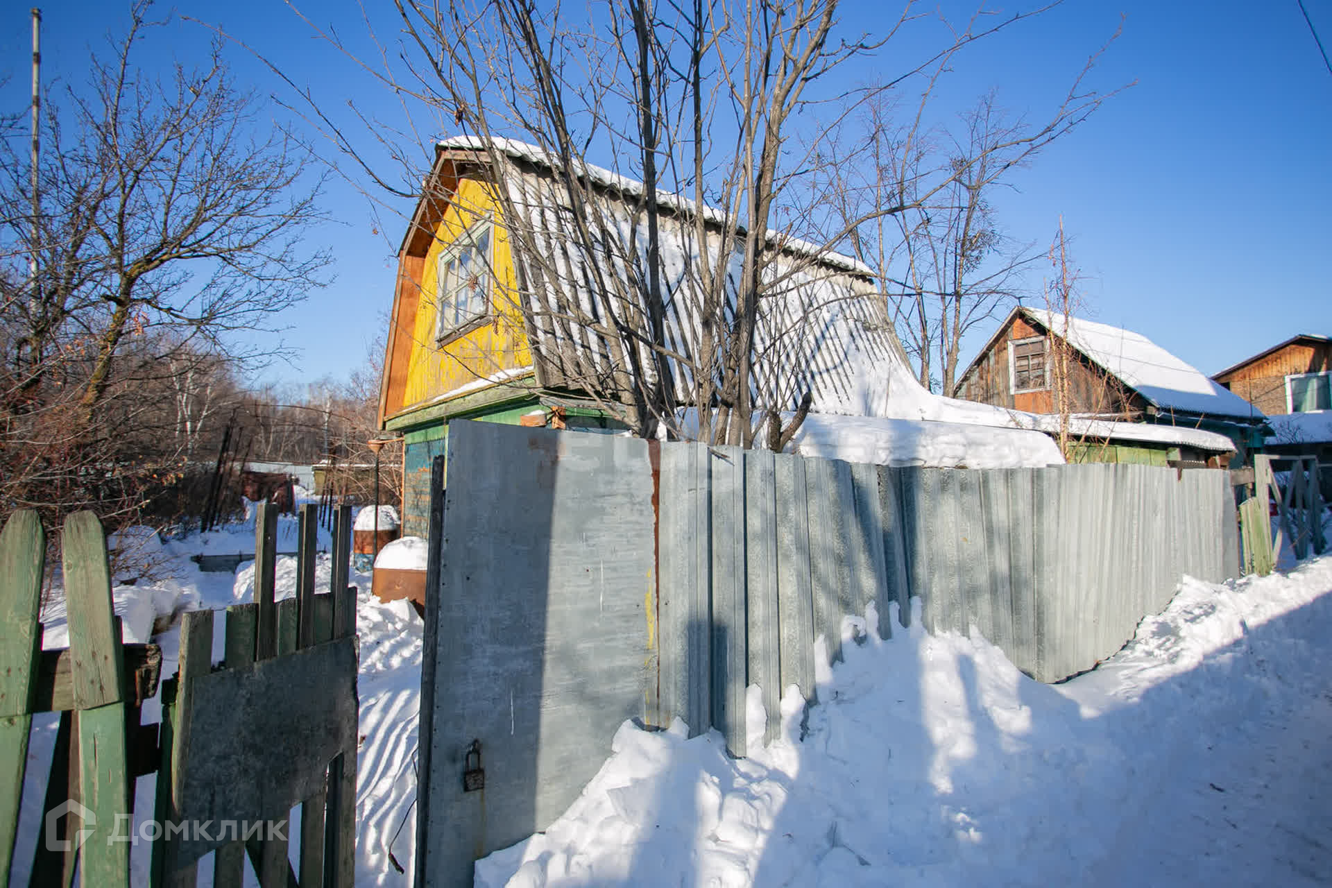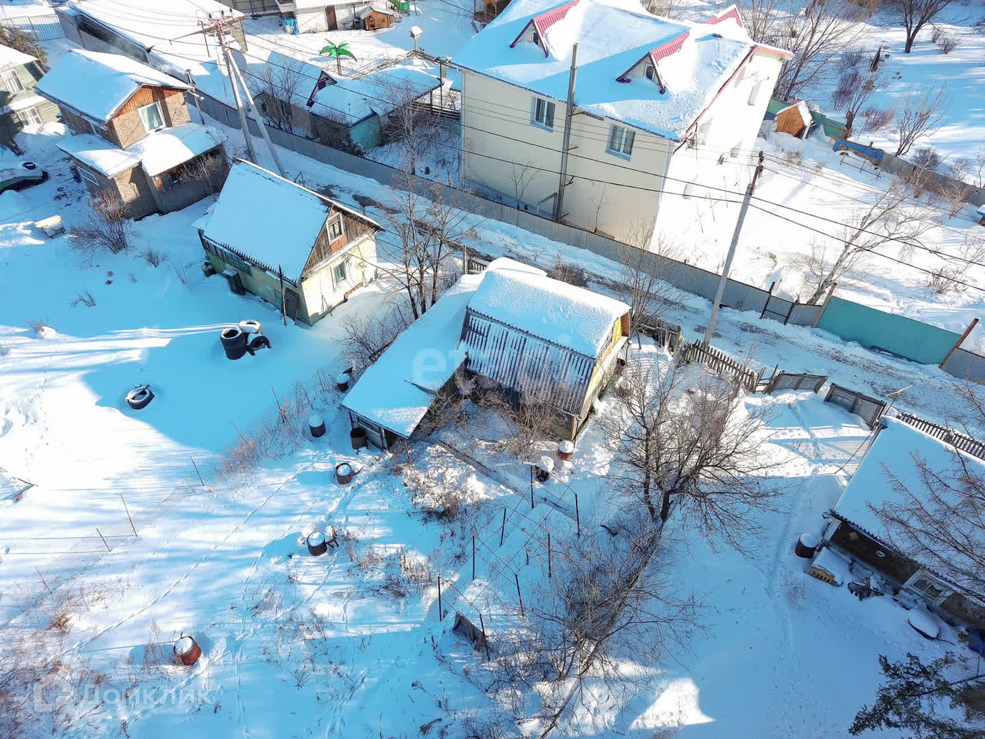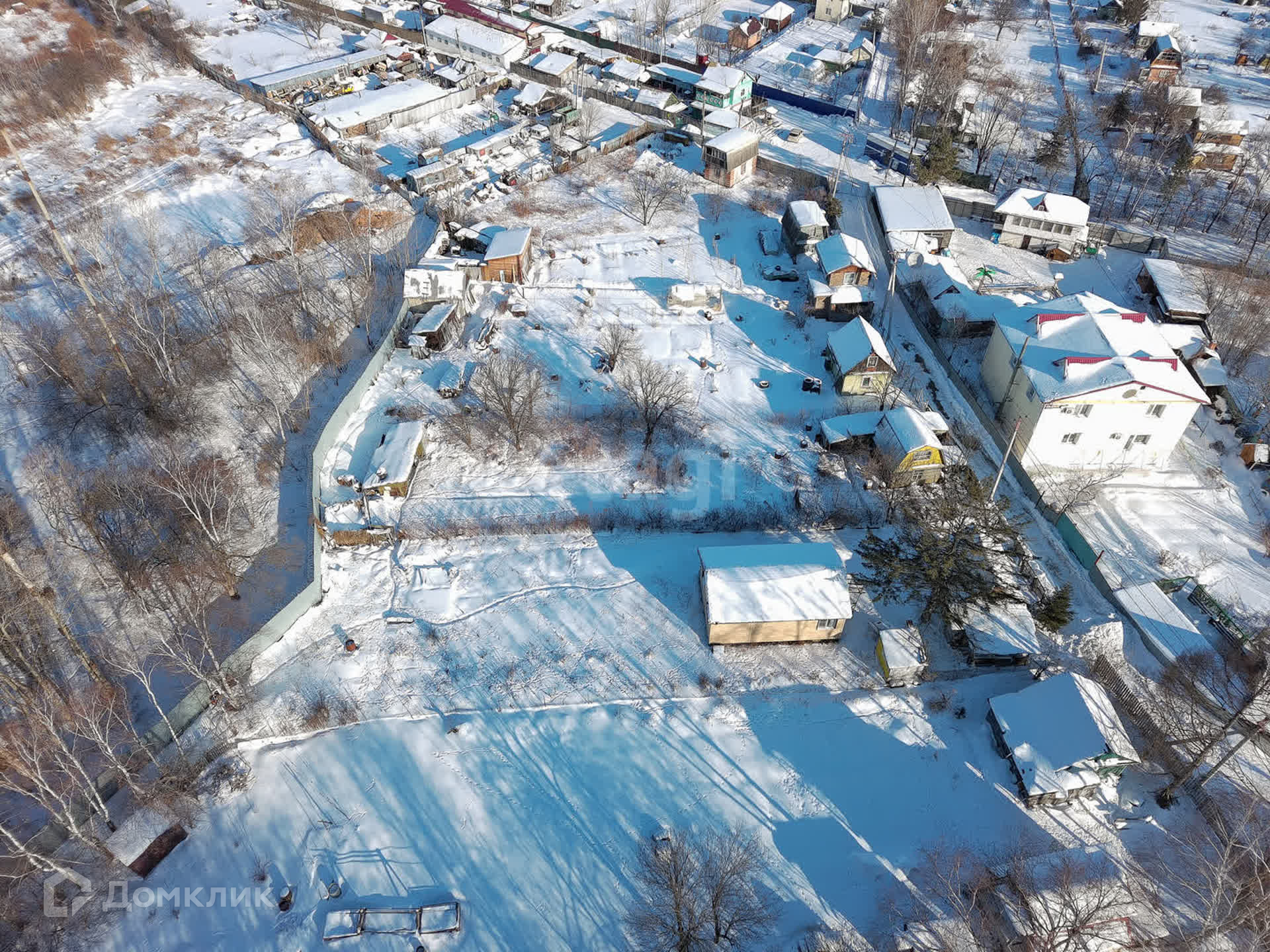 Участок огорожен сеткой рабицей, а с тыльной стороны установлен глухой забор, что обеспечивает ощущение уединения и приватности.