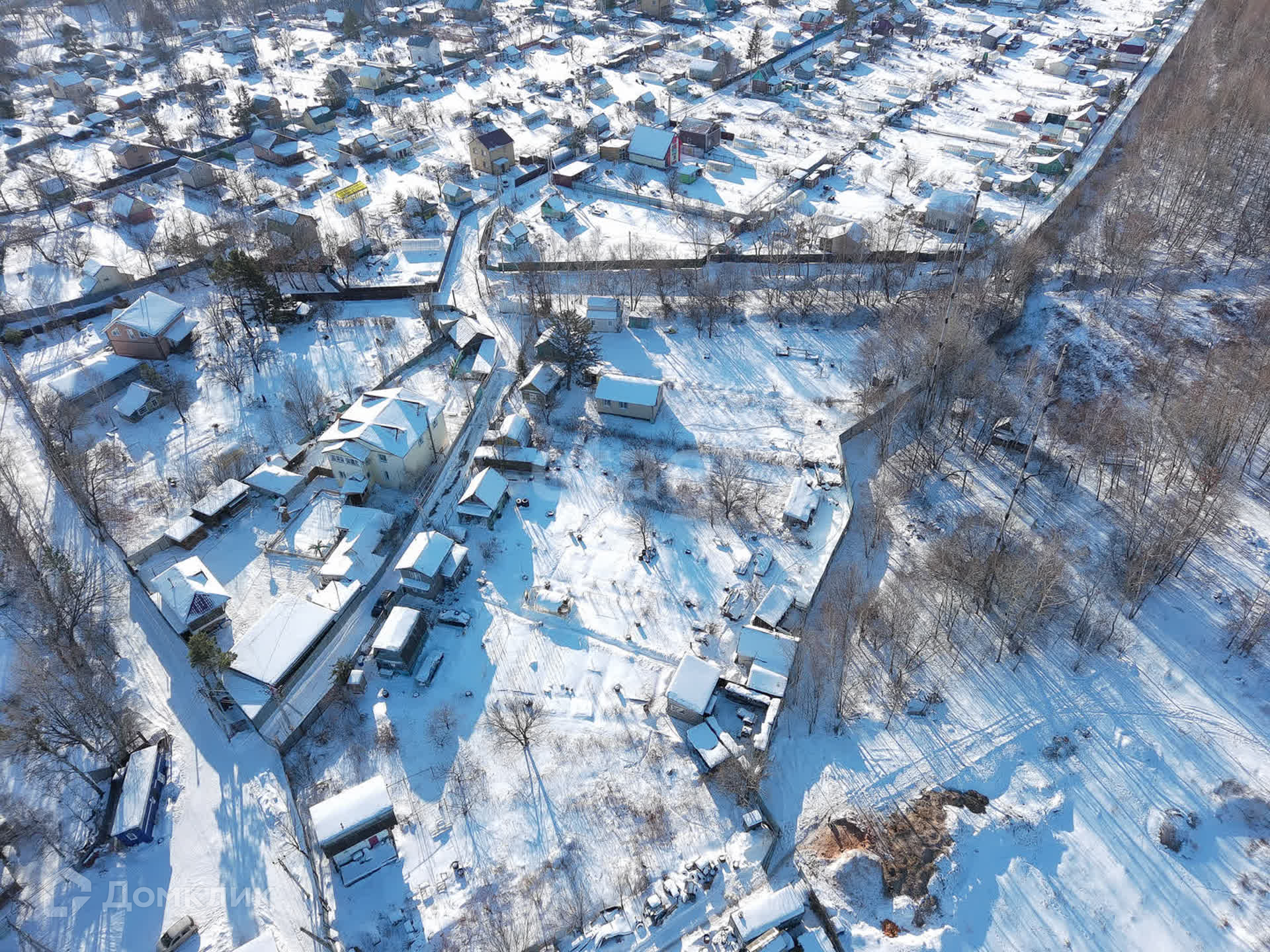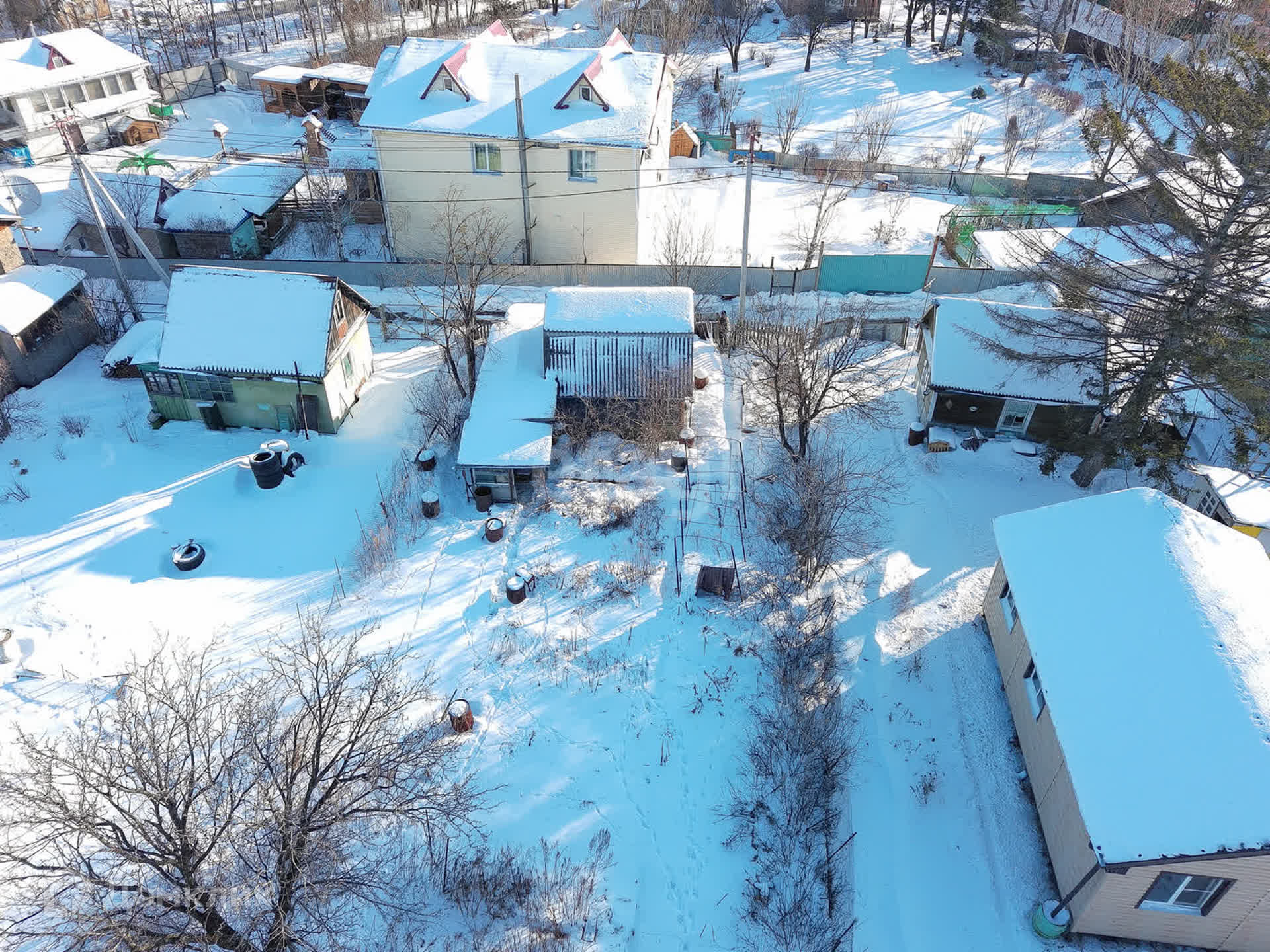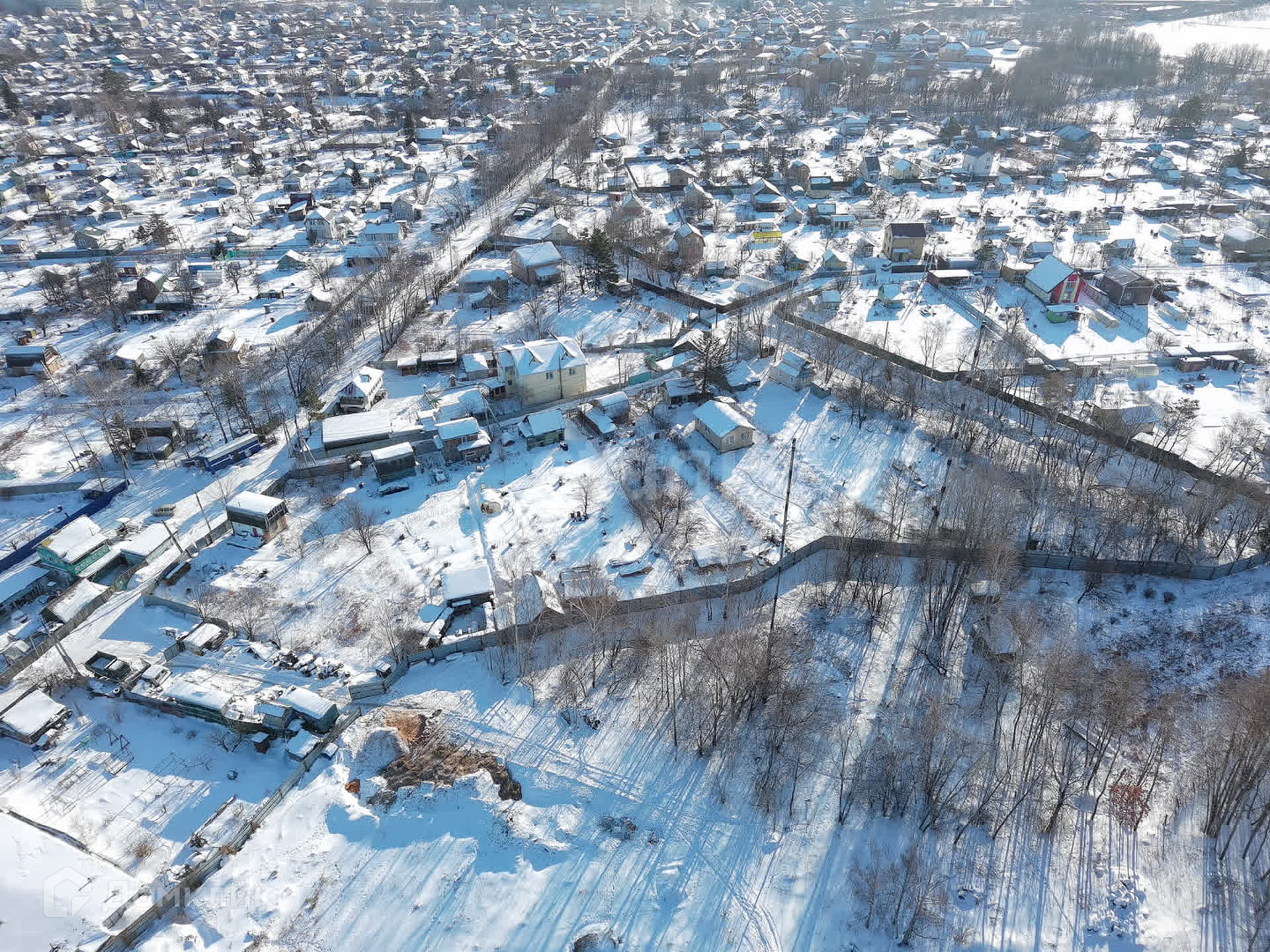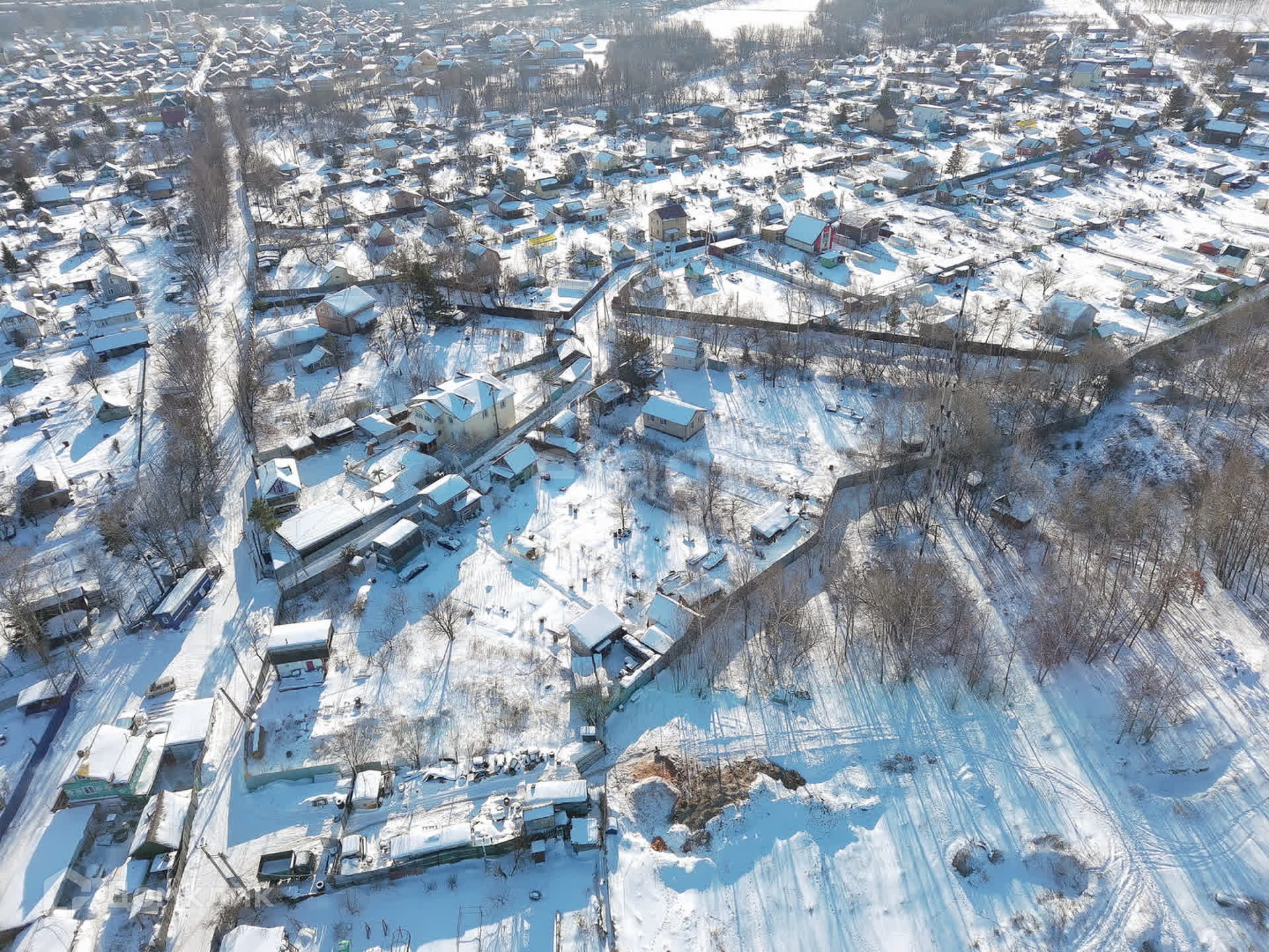 Участок огорожен сеткой рабицей, а с тыльной стороны установлен глухой забор, что обеспечивает ощущение уединения и приватности.