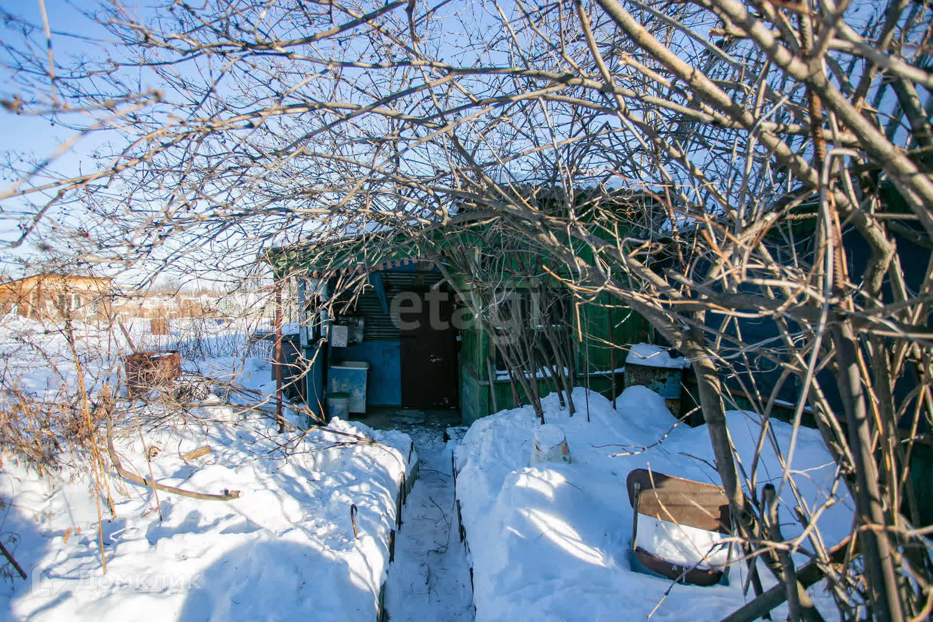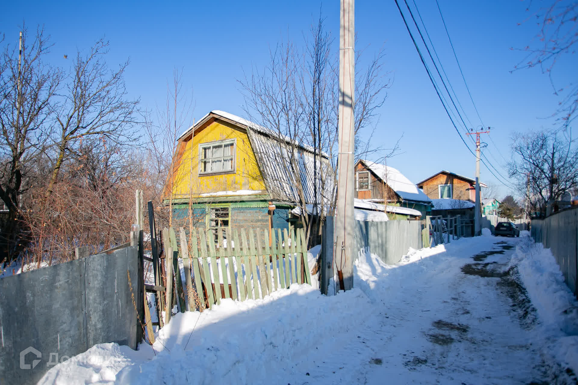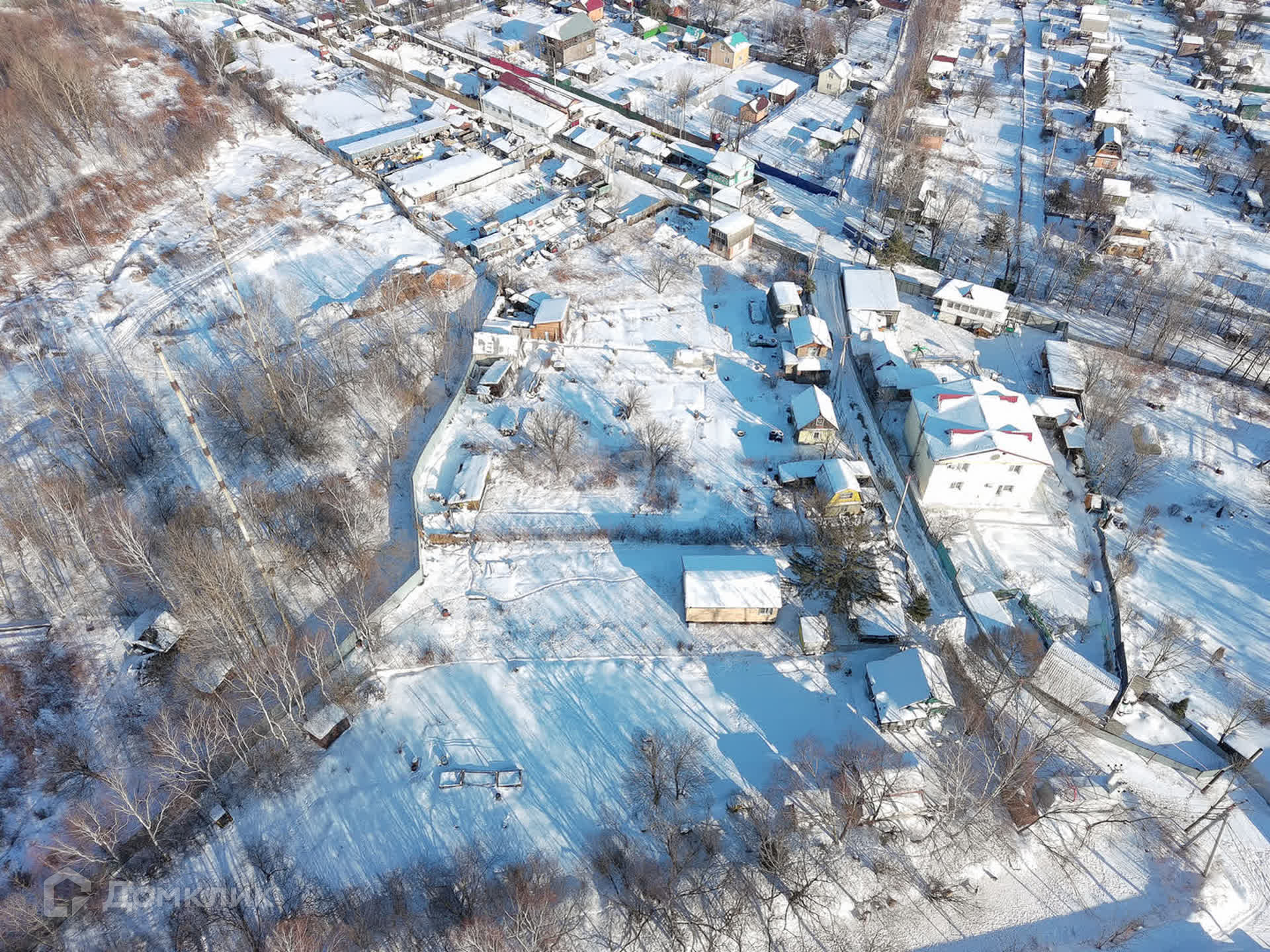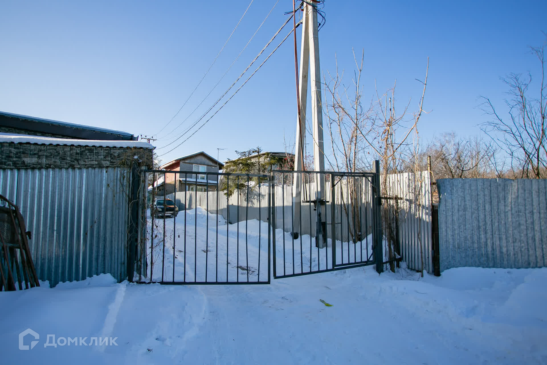 Участок огорожен сеткой рабицей, а с тыльной стороны установлен глухой забор, что обеспечивает ощущение уединения и приватности.