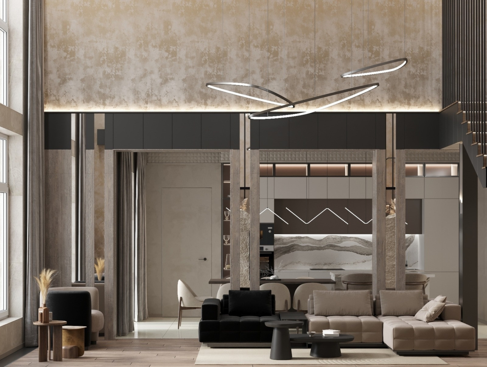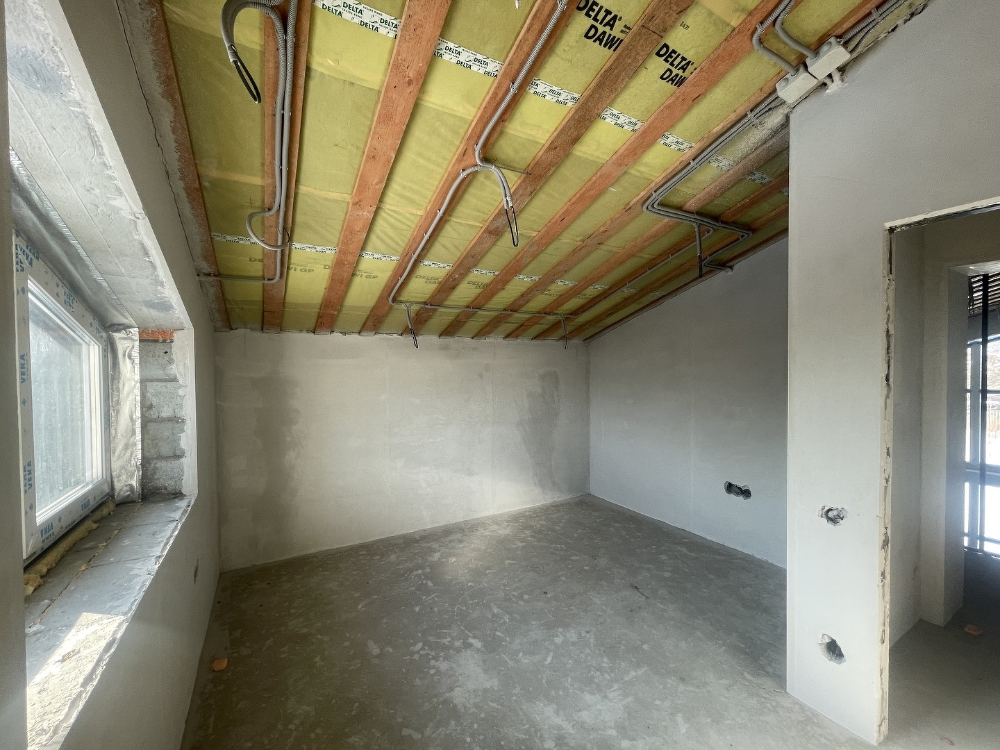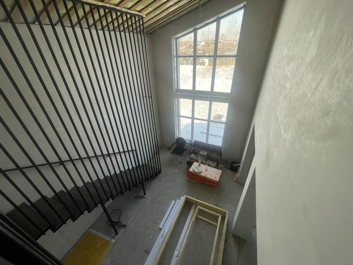 Большая кухня гостиная, в гостиной второй свет, высота потолков 6 метров, две гардеробные, на первом этаже для верхней одежды и на втором в спальне, три санузла, прачечная. Дом построен строительной компанией КИТ, стены-отсевоблок, базальтовый утеплитель на два слоя, японский фасад. Полностью готов к чистовой отделке, оштукатурены стены, разводка электрики, согласно дизайн проекту. Шамбо, скважина, отопление, все коммуникации подведены к дому.