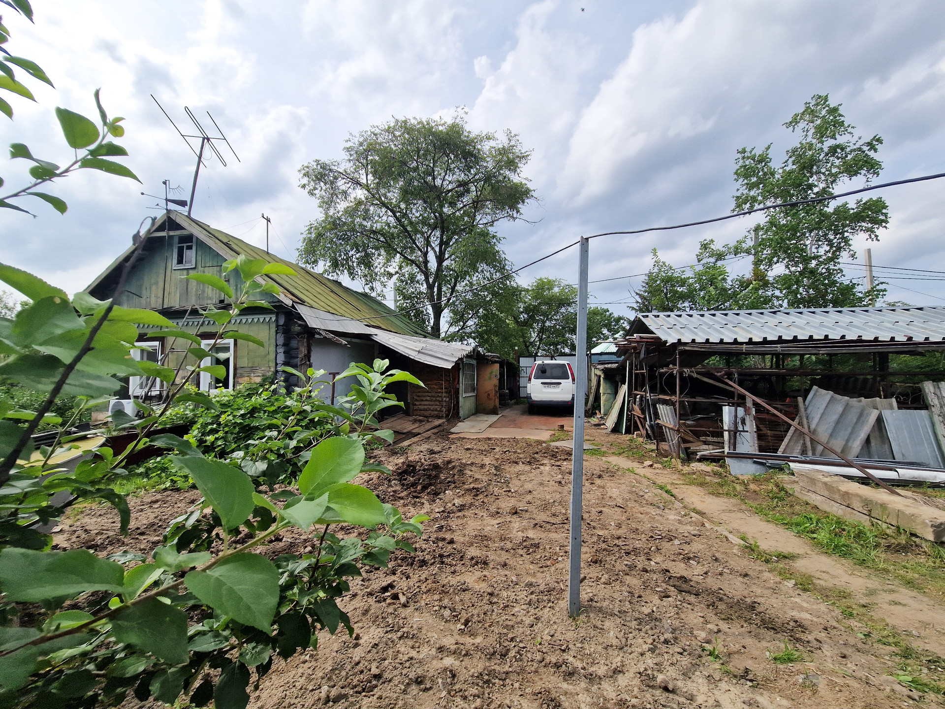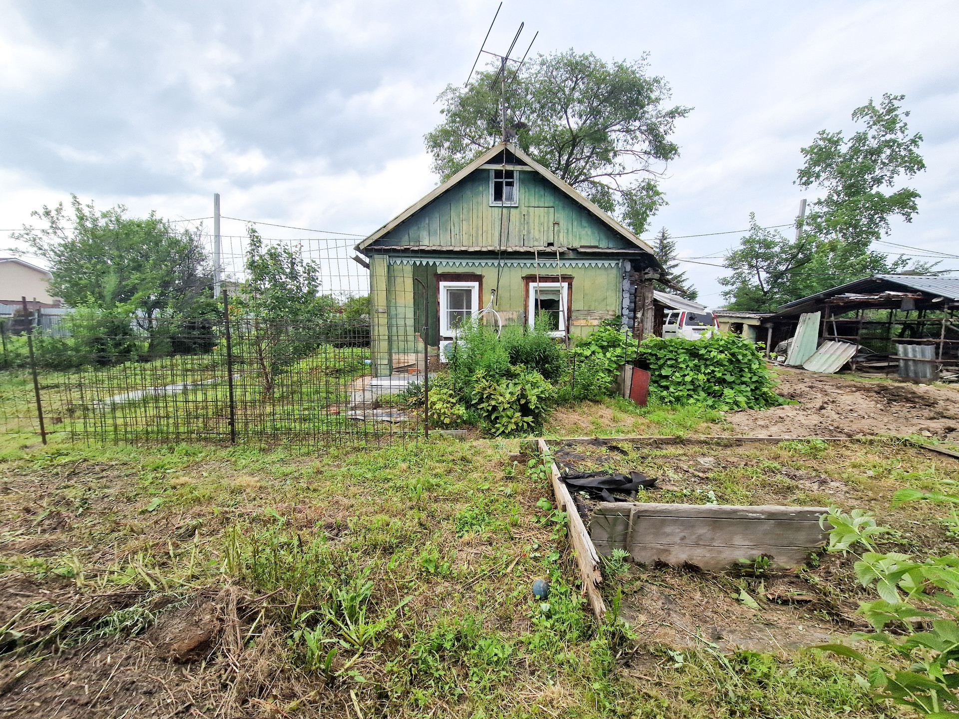 Участок ровный, сухой. Посажены плодовоягодные: ирга, смородина, малина, виноград, клубника. Также на участке: гараж, баня, туалет, навес.
