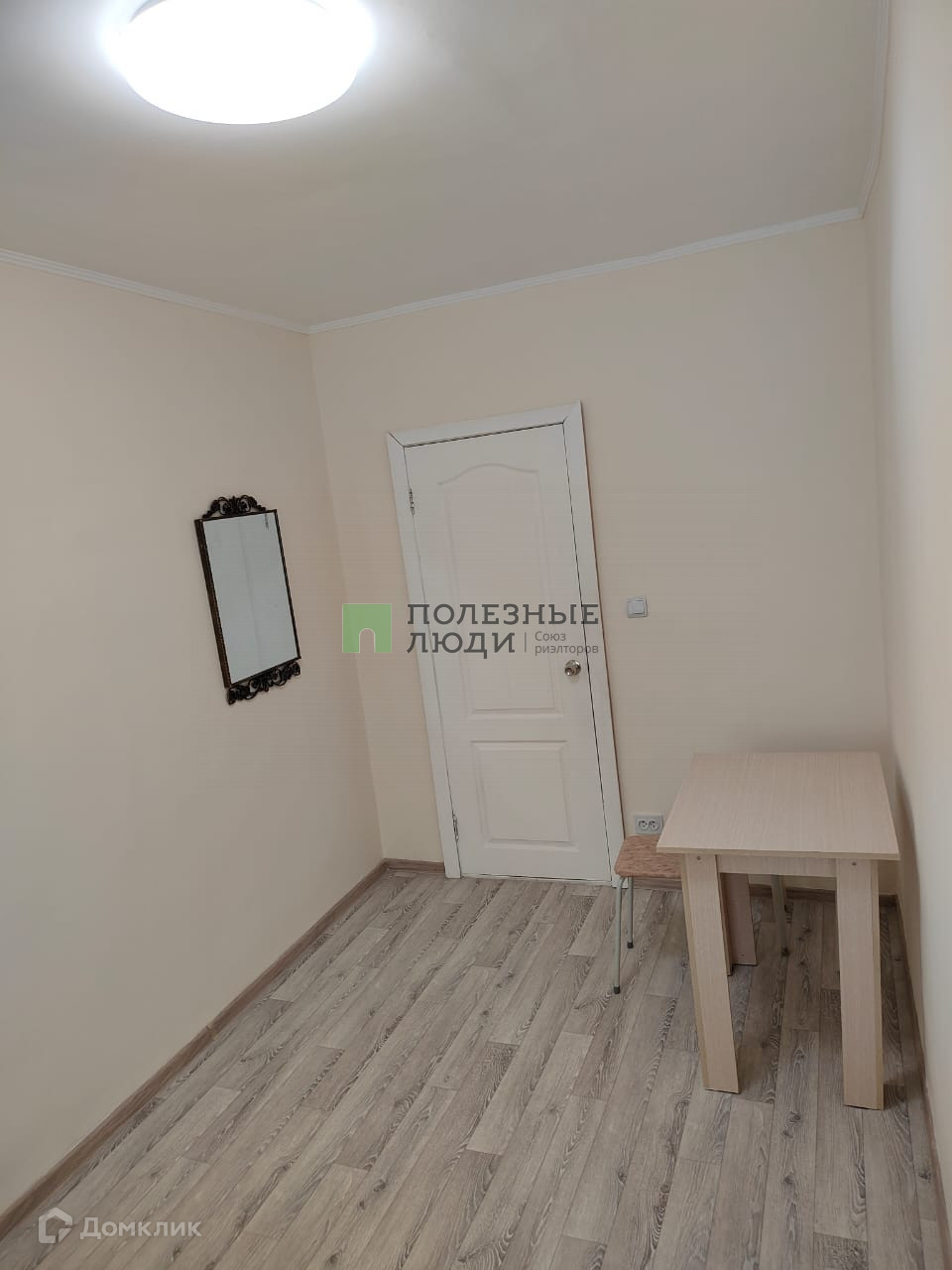 На кухне есть отдельно стоящий стол и плита закрепленное за комнатой. Есть возможность поставить там стиральную машинку.