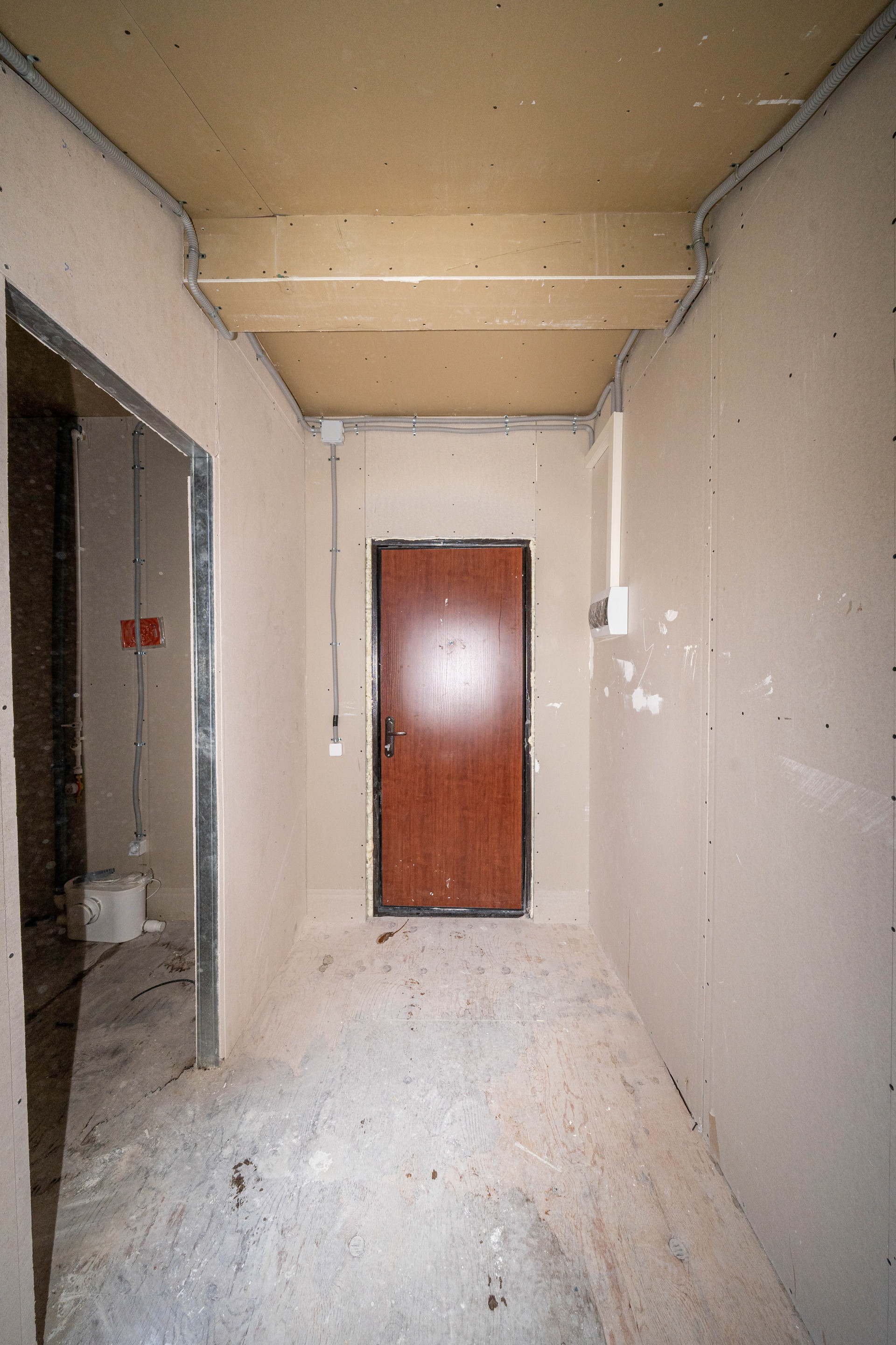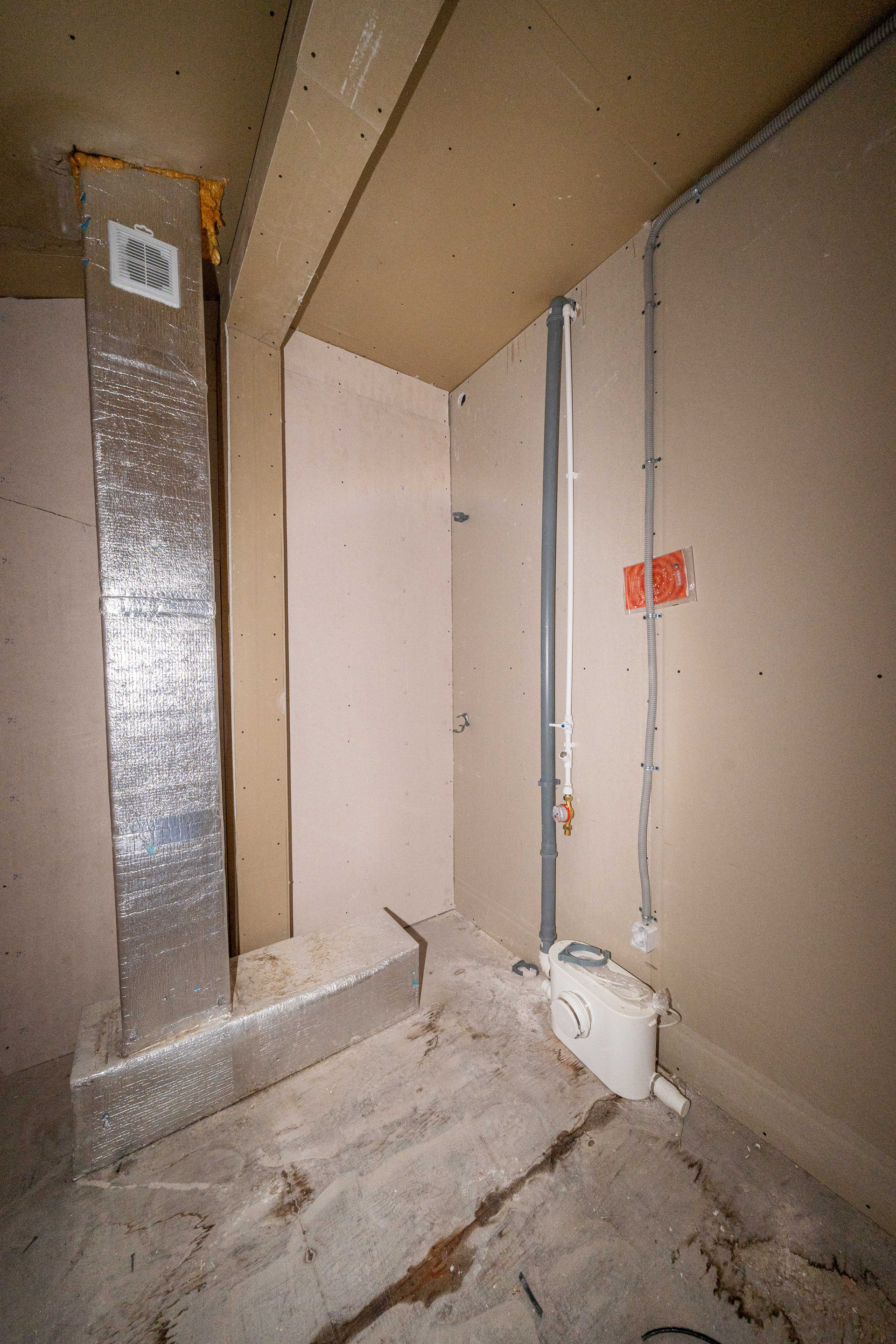 В квартиру уже можно заезжать и жить. Стены обшиты ГКЛ, в санузле влагостойкий ГВЛ.