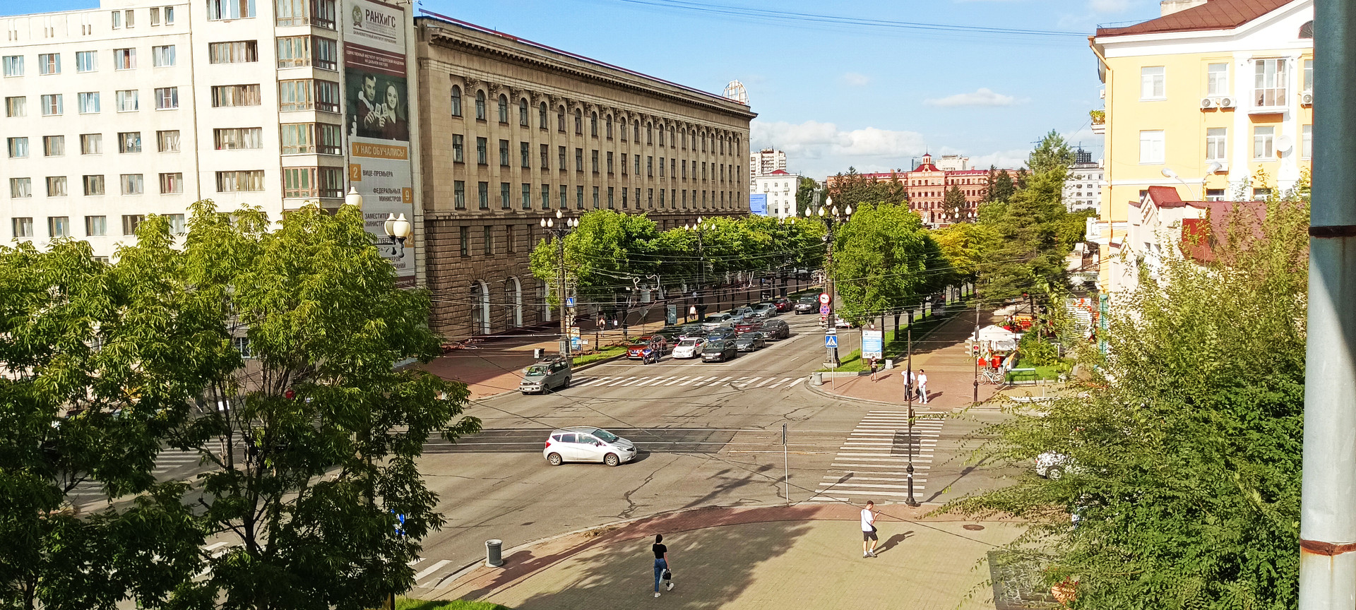 Квартира- просторная широкая с прекрасным видом на главную улицу города  и площадь Ленина. Отлично смотреть со своего балкона на шествия и парады в центре города.