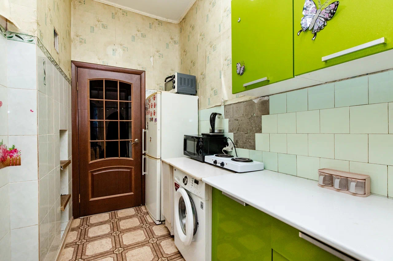 Квартира максимально просторная за счет хорошего метража 50.7 кв.м. и высоких потолков. Все окна- пластиковые, полы – линолеум, санузел раздельный и выложен кафелем, входная дверь металлическая. Для Вашего комфорта при продаже остаются некоторые элементы мебели и кухонный гарнитур.