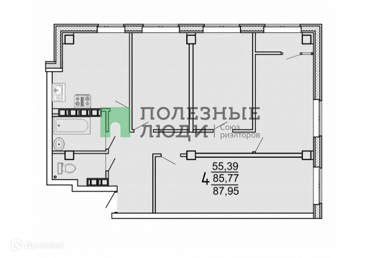 4-комнатная квартира с раздельными комнатами в сданном доме