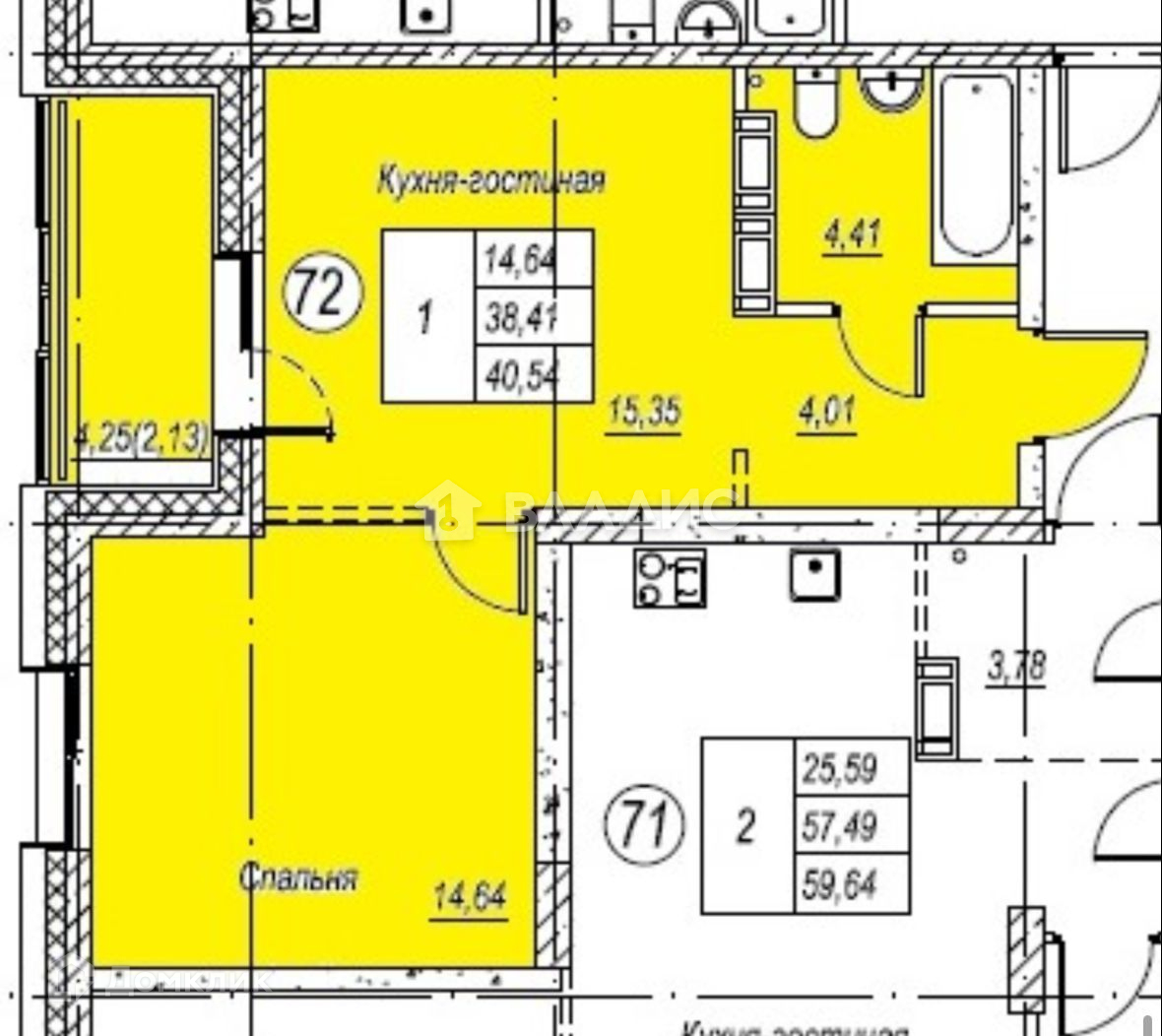 Общая площадь 40.5 м2