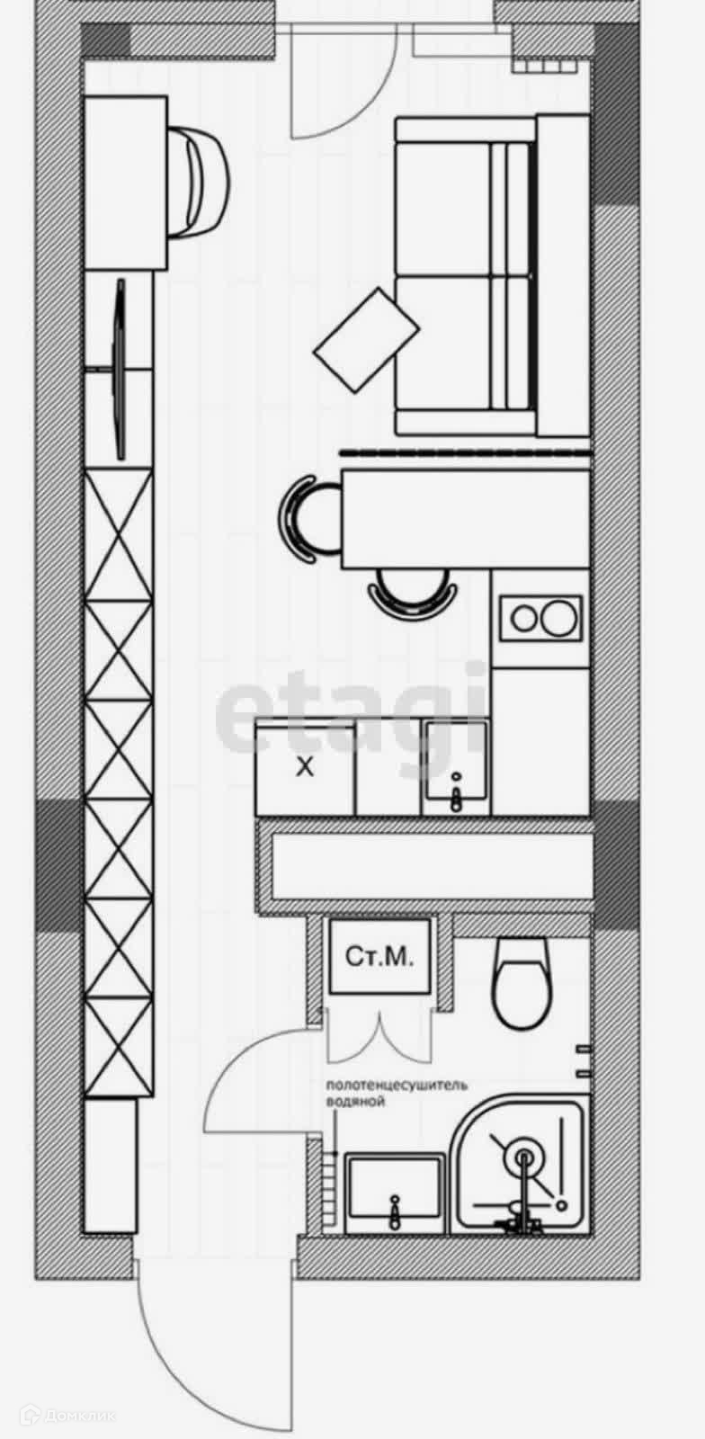 Общая площадь 16.8 м2