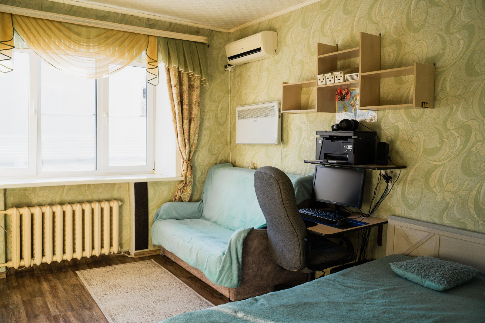 Площадь помещения 19,2 м2. Установлены пластиковые окна, выполнен косметический ремонт, для удобства есть кондиционер. Вся мебель и техника (стиральная машина, холодильник и прочее), что есть на фото, остается новому владельцу! Отличный вариант "заехать и жить".