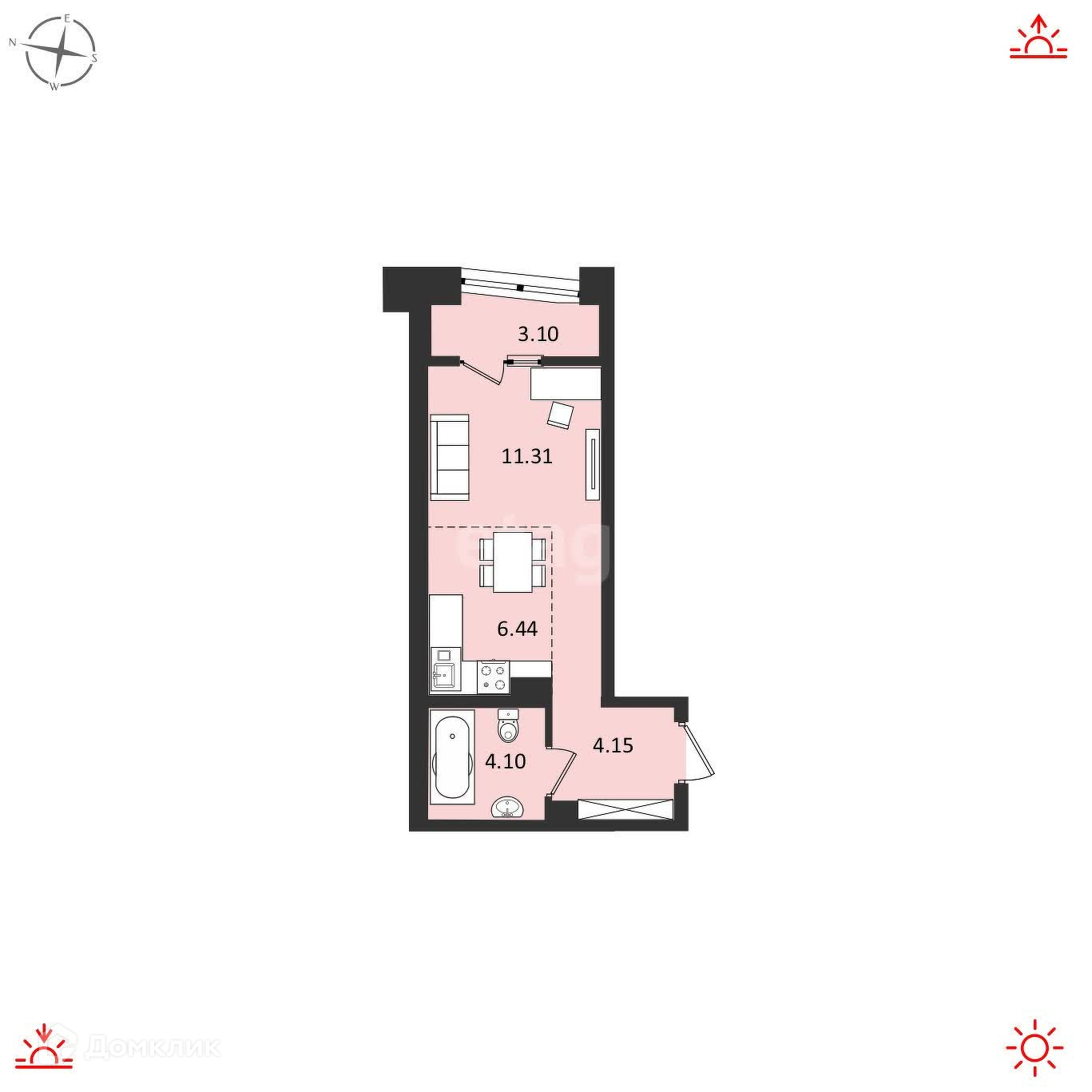 Студия удлинённой формы позволяет эффективно использовать её площадь и Номер в базе: 10998891. Район: Железнодорожный