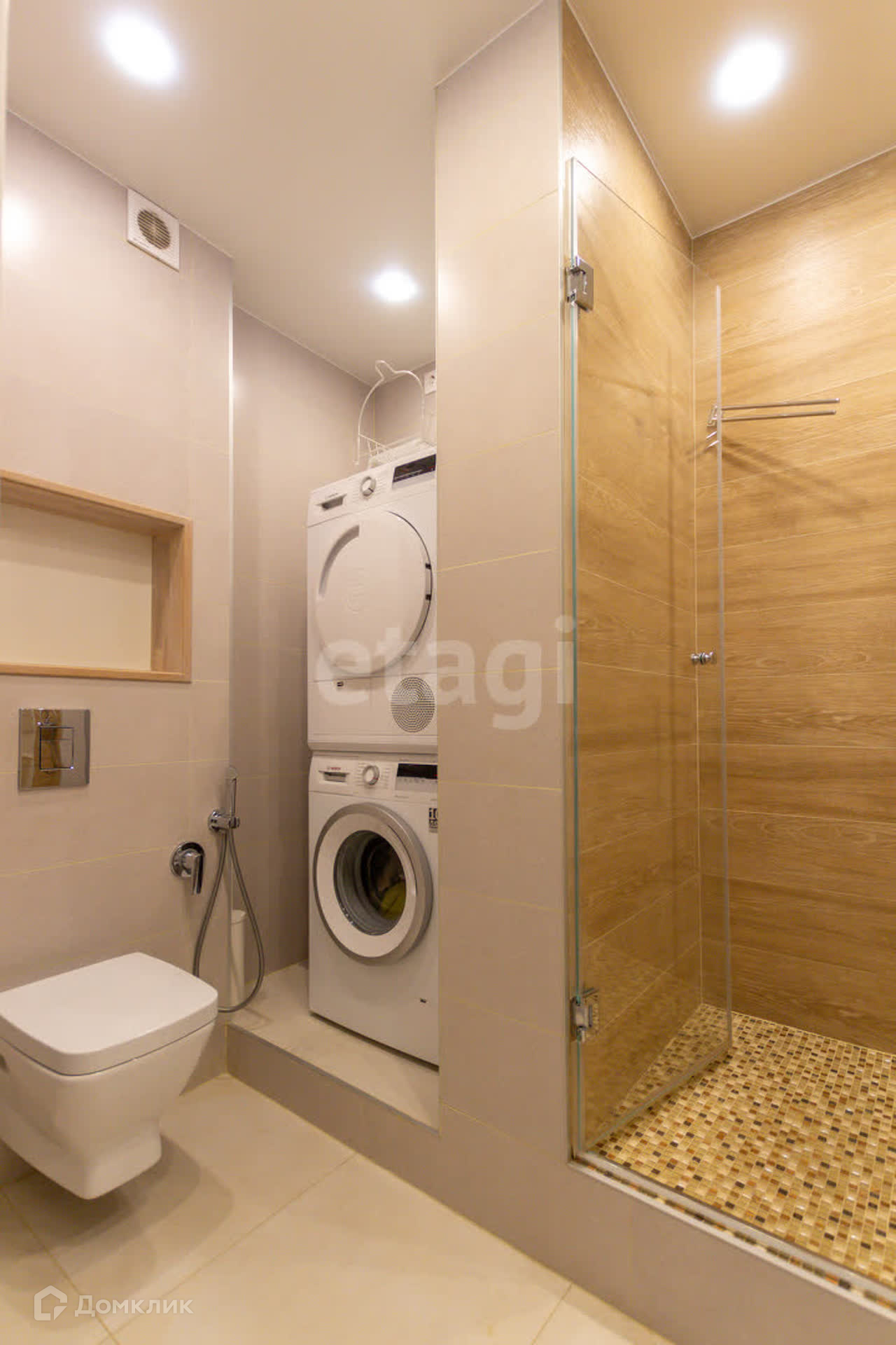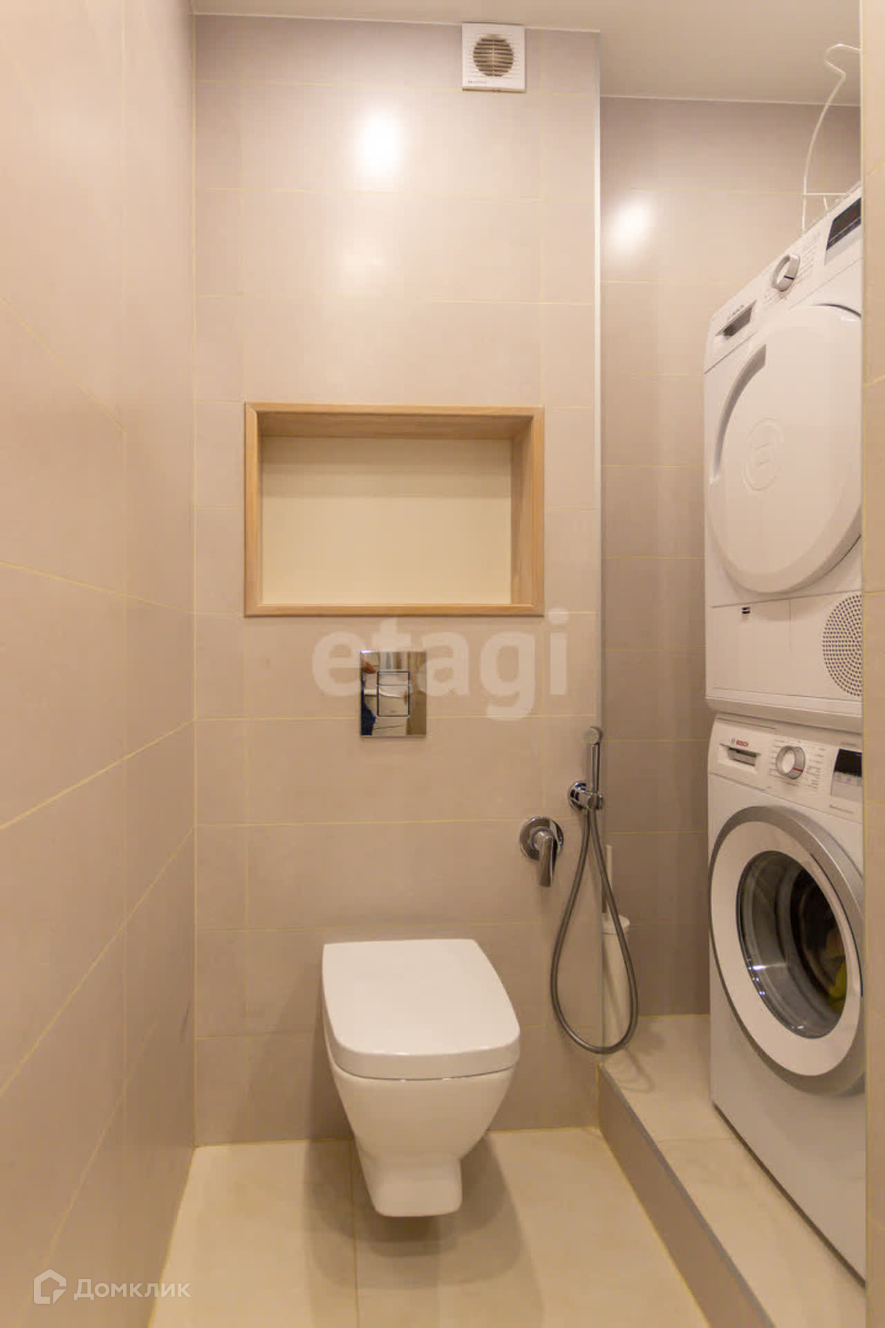 В ванной комнате установлена современная сантехника и есть место для стиральной машины.