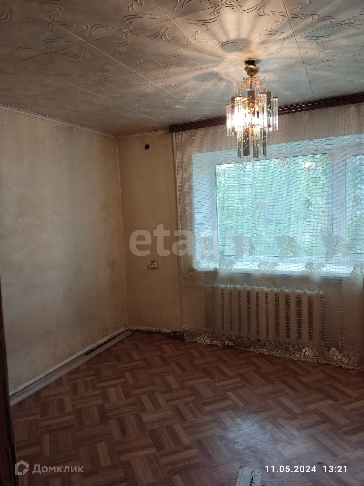 В комнате удлинённая батарея, поэтому зимой очень тепло. Окно выходит на детскую площадку. Этаж четвёртый, на этаже установлена металлическая дверь. Электропроводка заменена. Ни долгов, ни прописанных лиц нет.