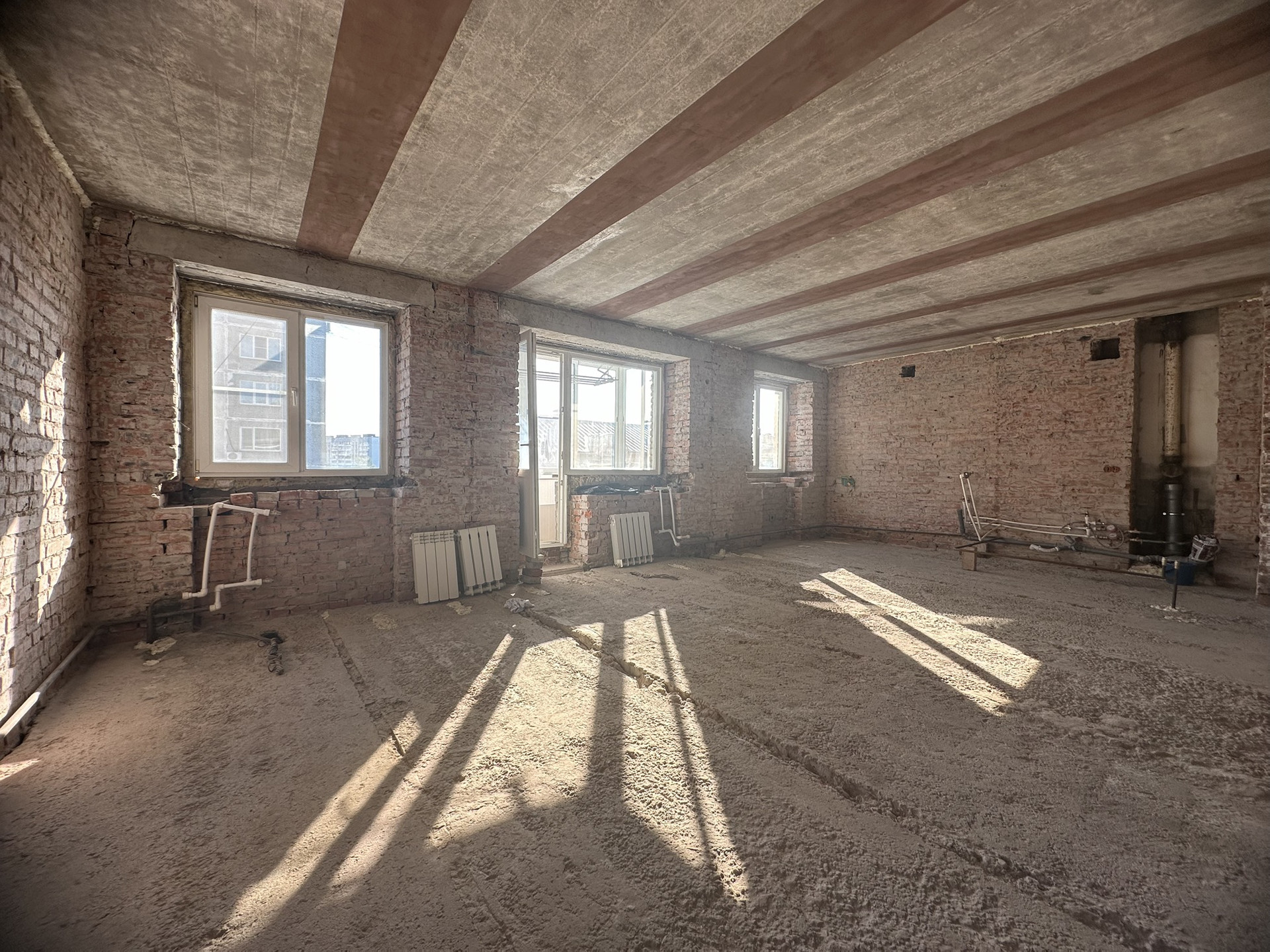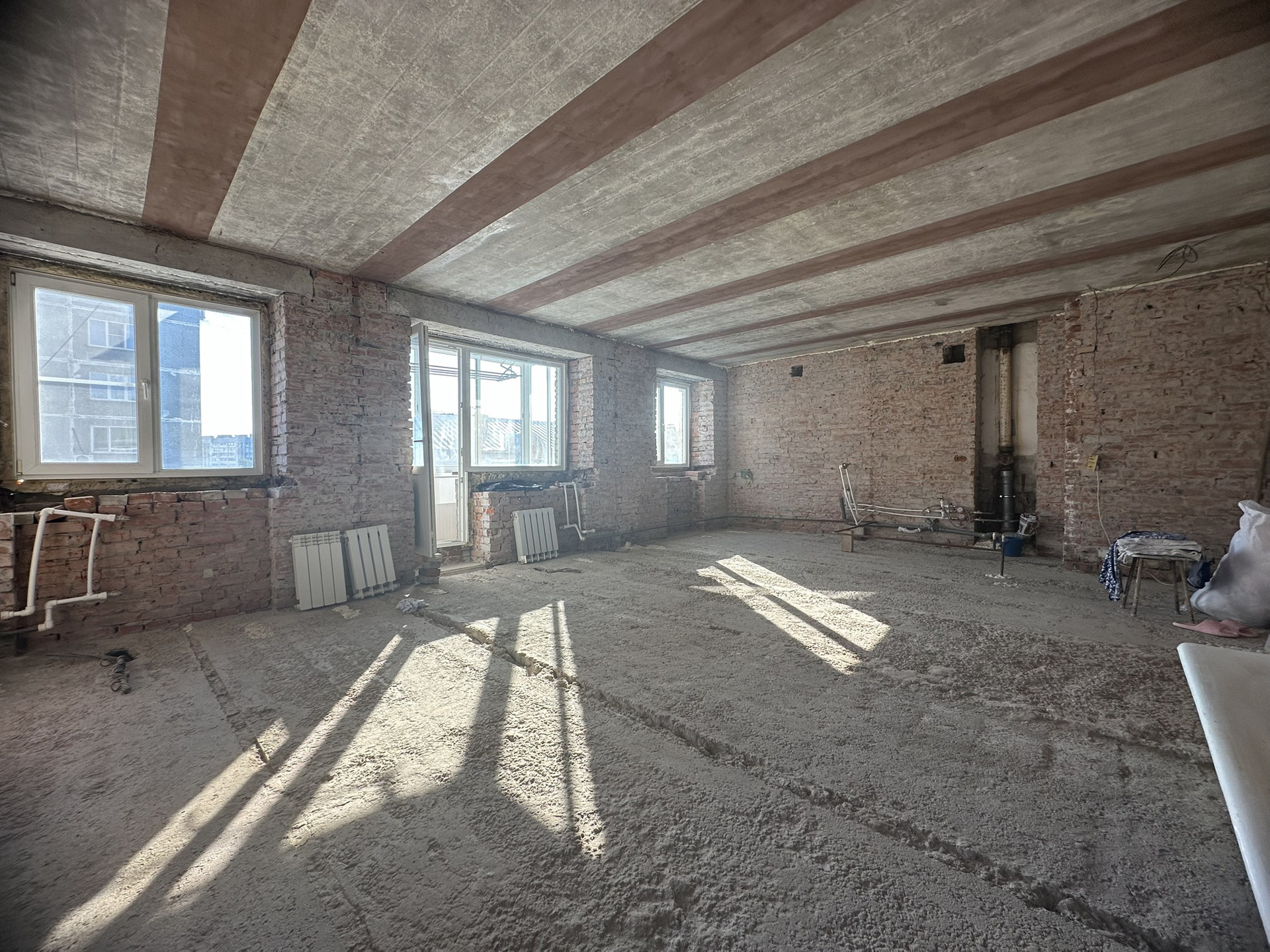 Квартира в центре города, свободной планировки (по к 2-комнатная) полностью подготовленная под ваш дизайнерский ремонт.