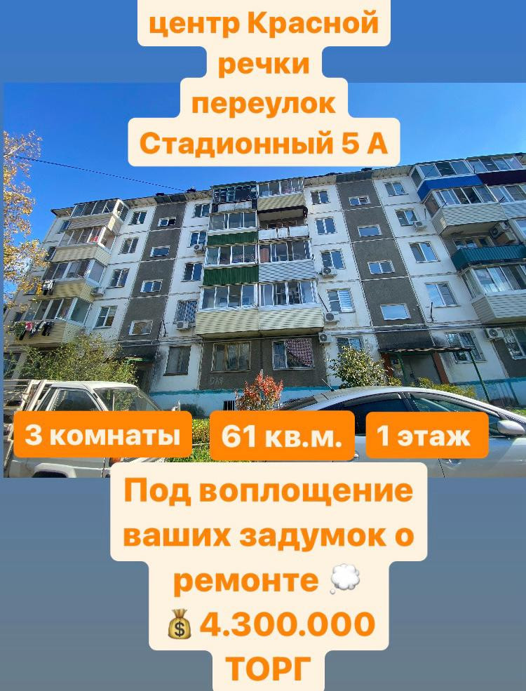 3-комнатная квартира, 60.9 м2, этаж 1 / 5, на продажу в Хабаровске, Стадионный переулок, 5А