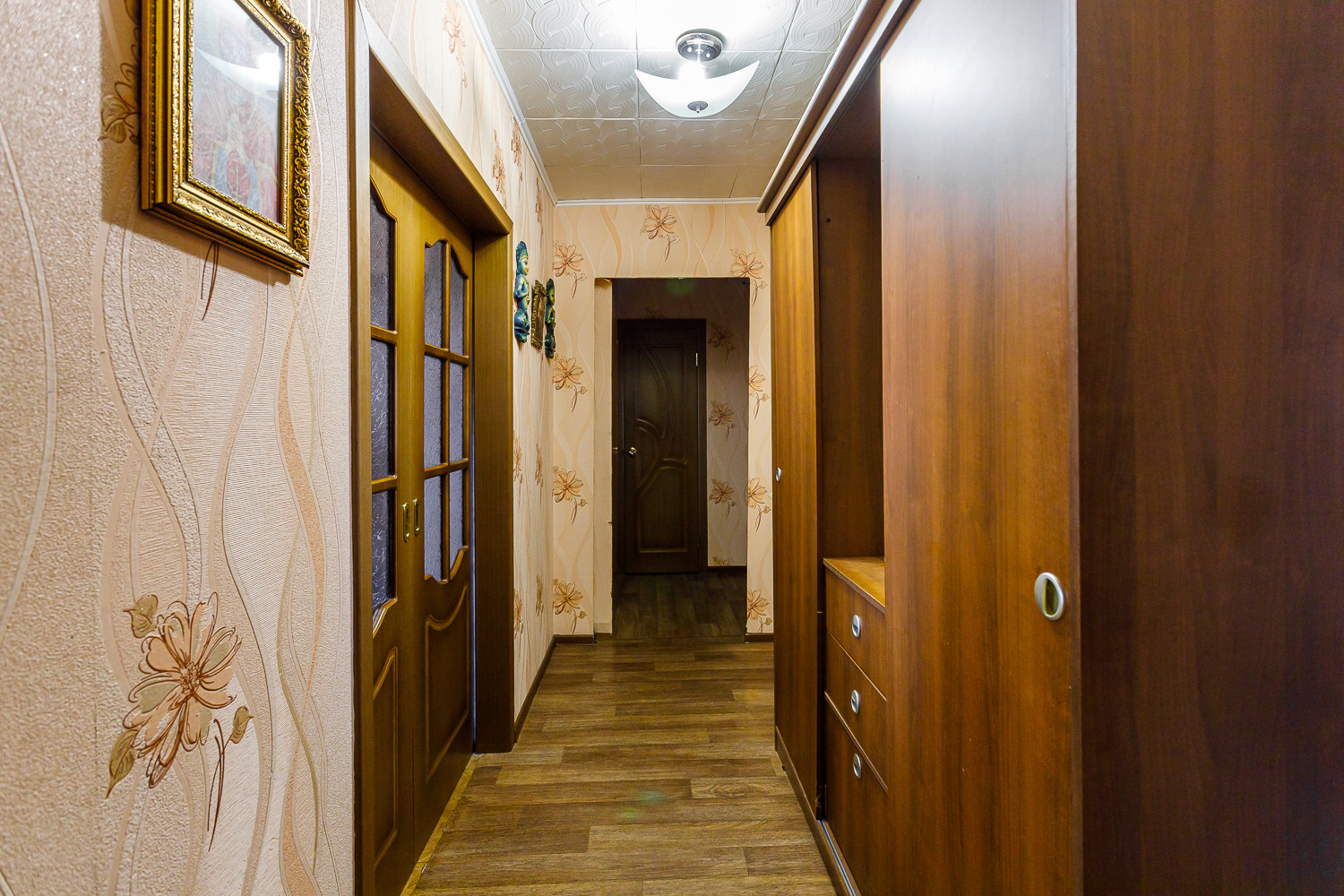 Состояние квартиры хорошее: пластиковые окна, в ванной комнате кафель на стенах и на полу, санузел пластиковые панели, установлены приборы учета, новые межкомнатные двери.
