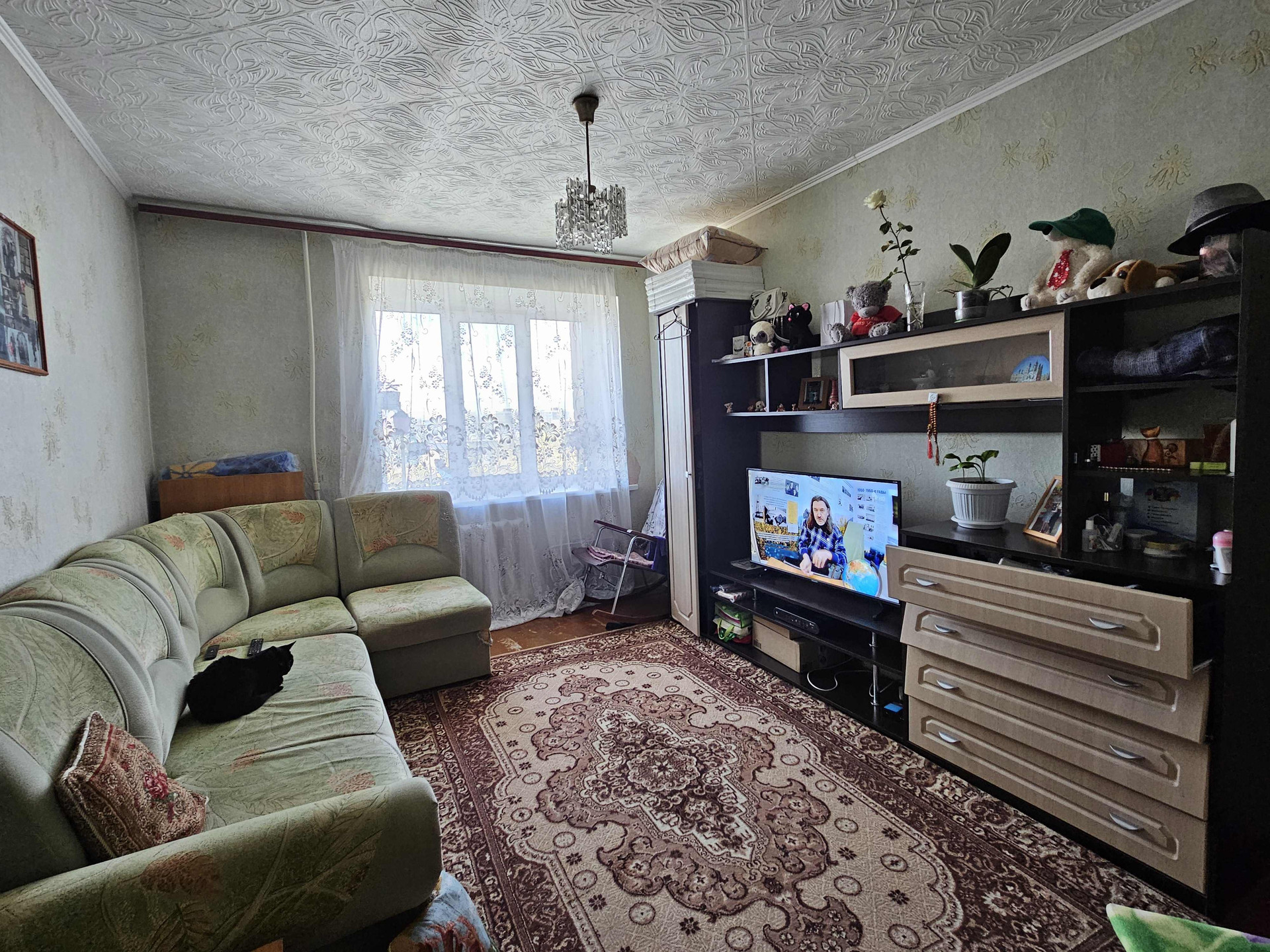 Светлая квартира в 9-ти этажном доме. В комнате и кухне крсметический ремонт. Санузел и прихожая без ремонта, сантехника вся новая. Пластиковые окна. Просторная кухня, считается как комната.