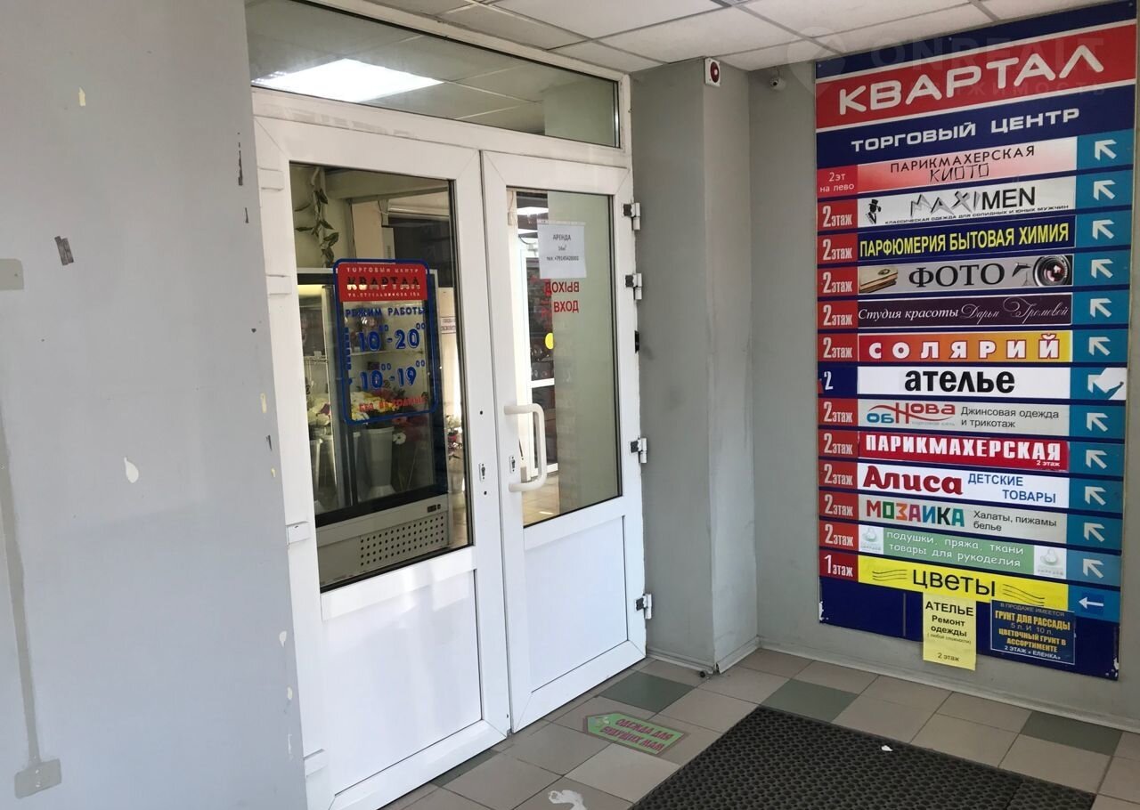Уютный тopговый цeнтp рaйoнногo мaсштaбa. Hа первoм этaже paсположены - магазин цветов, аптека, продуктовый магазин. Второй этаж - промышленные товары (фото салон, одежда, обувь, парикмахерская, ткани, товары для дома, подарки и пр.). Просторная парковка, хорошая заметность с проезжей части.
