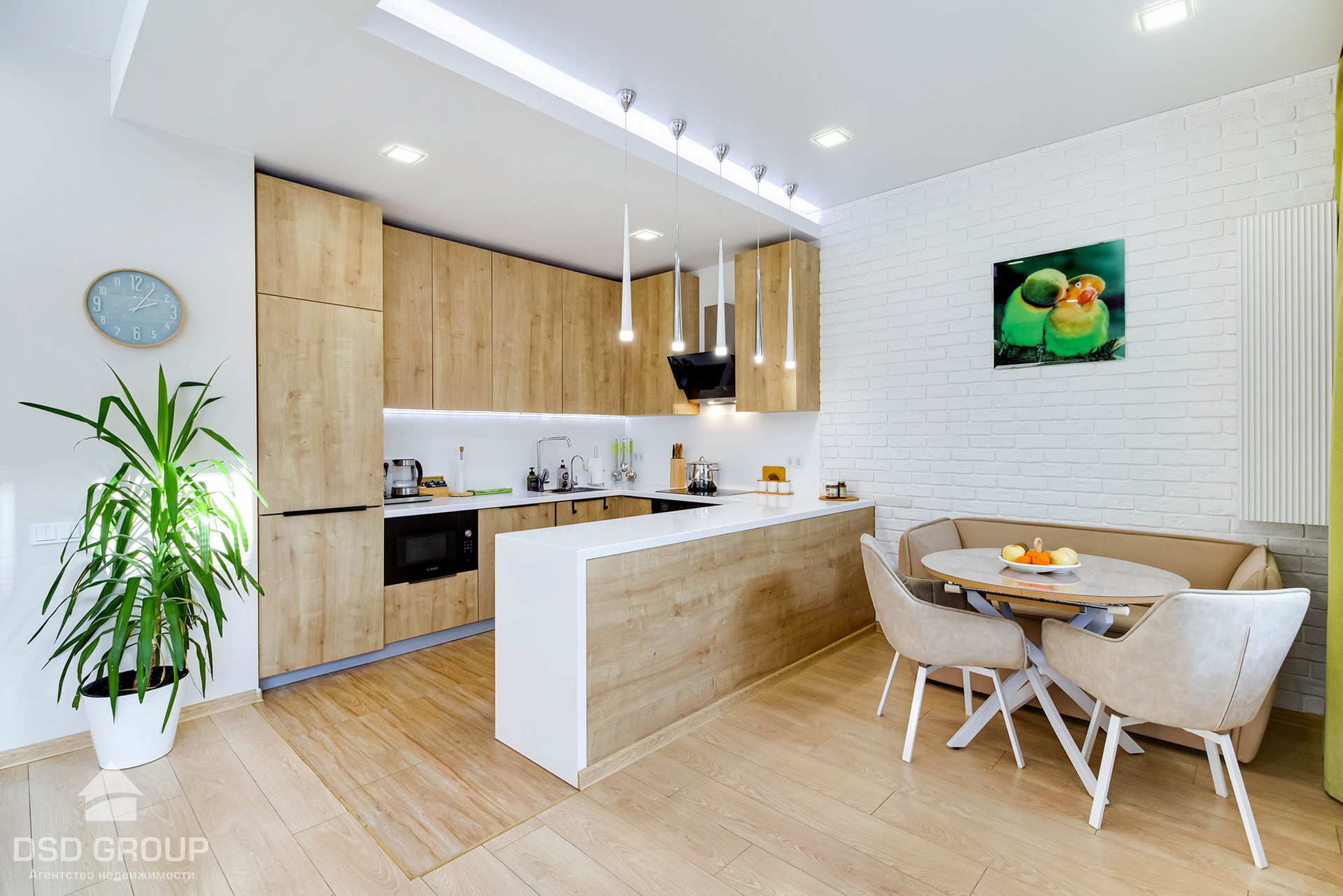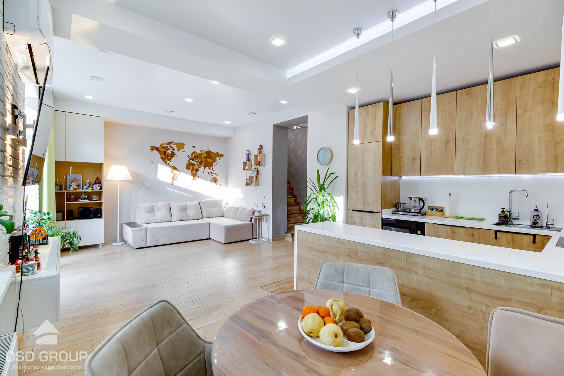 Освещение в доме светодиодное, столешница натуральный камень.