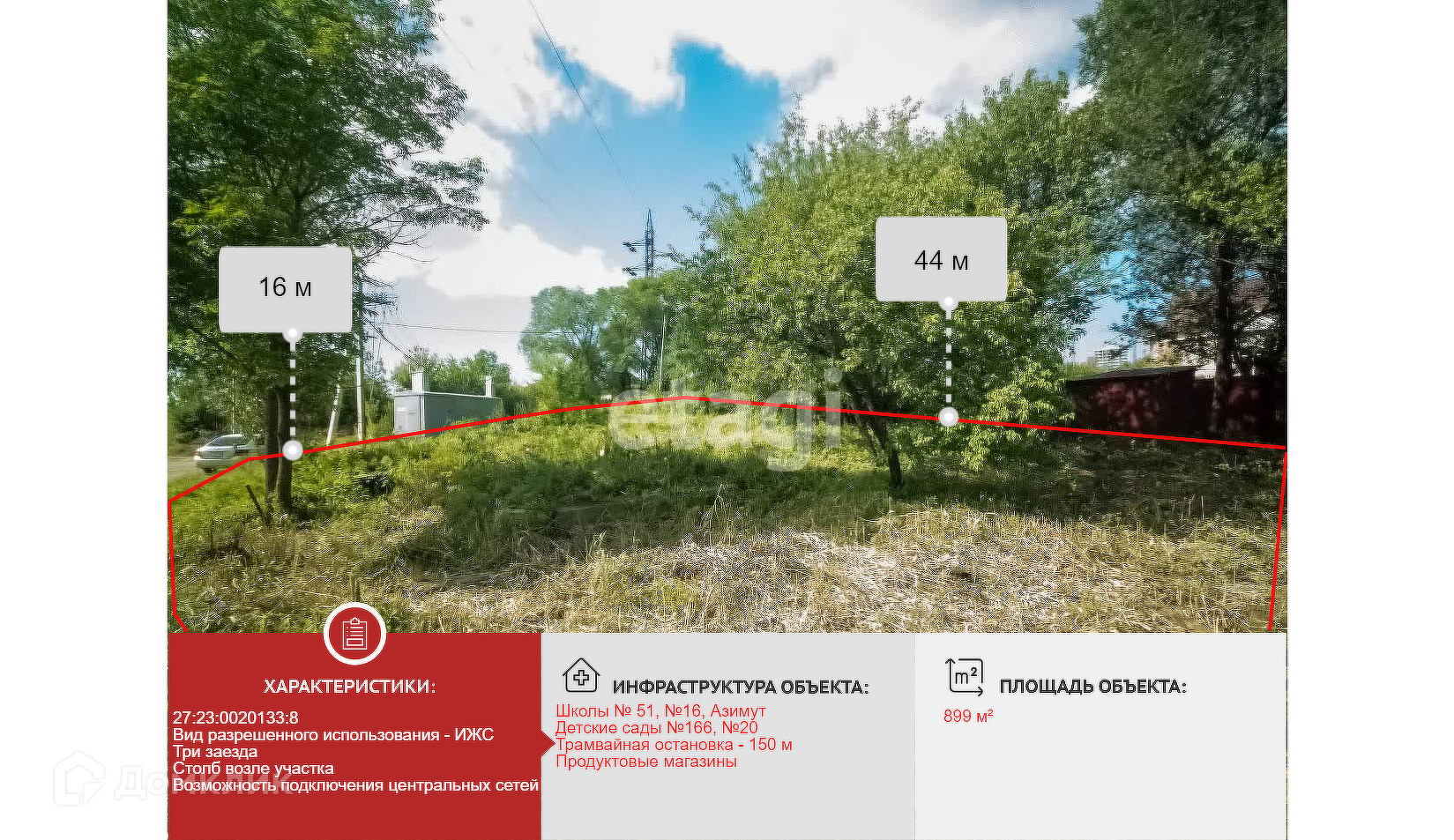В продаже отличный участок для строительства дома вашей мечты! Удобное расположение - Кировский район, ул. Бабушкина, подъезд к участку возможен с трёх сторон, что открывает множество вариантов размещения построек. Площадь составляет 899 м² - поместится всё необходимое. Участок расчищен он кустарника и небольших деревьев, оставлены только крупные, имеется небольшой естественный уклон исключающий застой воды. Столбы линии электропередач расположены непосредственно по границам участка, это позволит избежать дополнительных трат при подключении. Имеется возможность подключения к центральным сетям водоснабжения. Здесь вам будет доступна вся необходимая инфраструктура: школы, садики, магазины, до трамвайной остановки 150 м, небольшая лесополоса ограждает от шума и пыли с оживленной трассы. Это замечательное место для жизни, не упустите возможность приобрести!