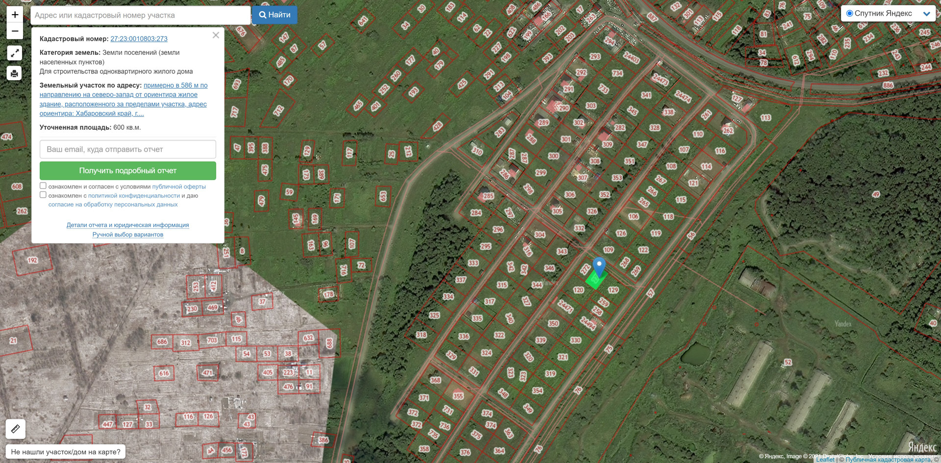 Представляю вашему вниманию отличный участок правильной формы 20x30 (6 соток) от собственника.К/н 27:23:0010803:273 Участок находится в п.Берёзовка по ул.Автомобилистов (кадастровый снимок прилагаю). Участок сухой, ровный, границы вынесены, межевание сделано, документы готовы.