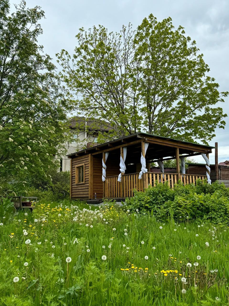 На участке просто потрясающий сад, насчитывающий сотни деревьев и кустарников.