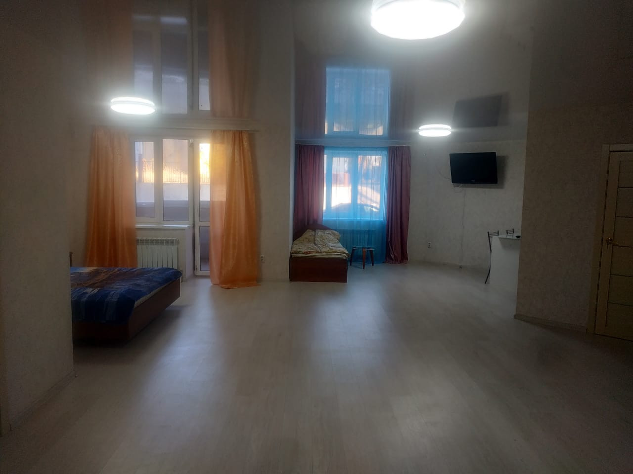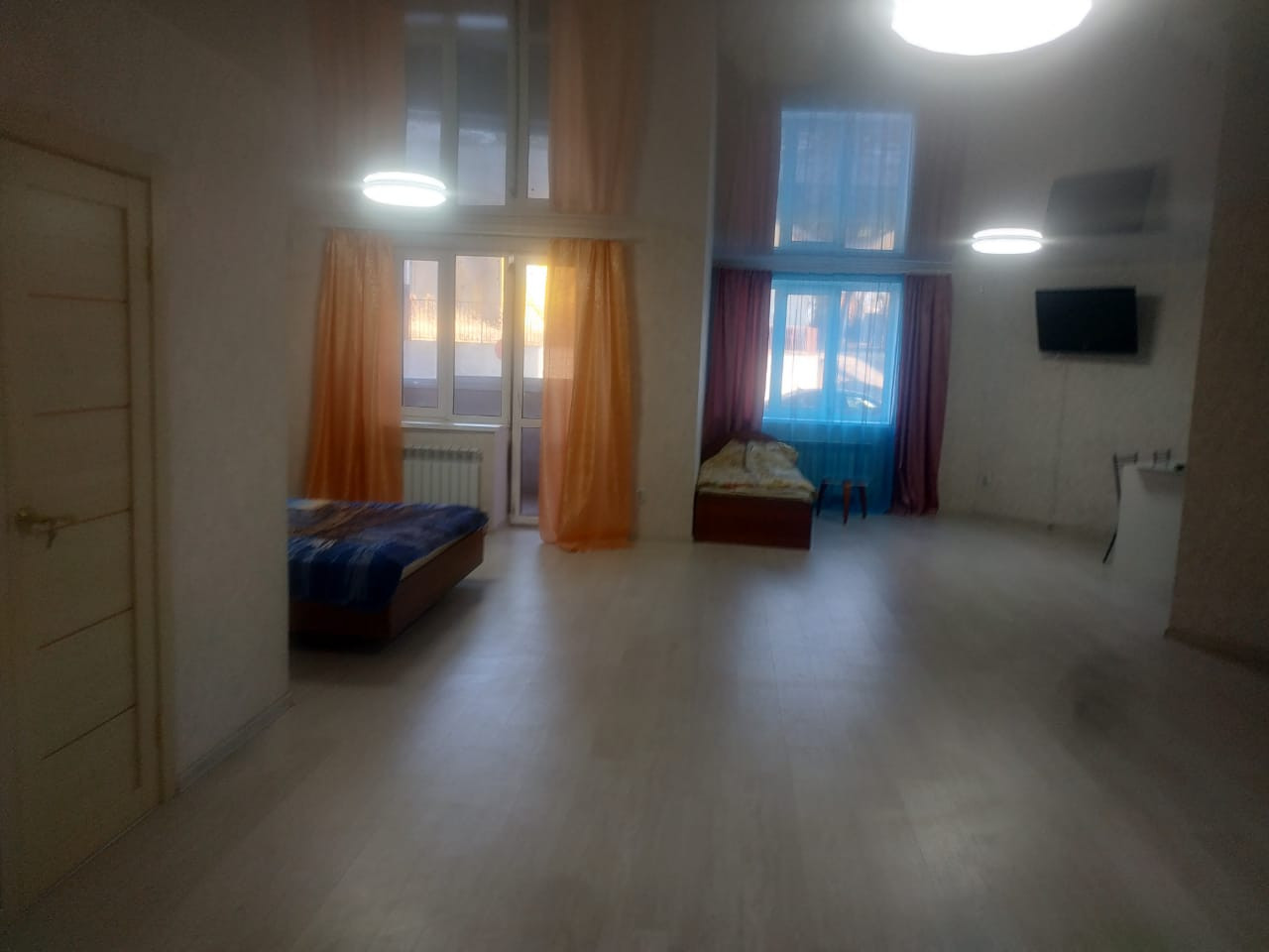 Балкон застеклён, Ламинат, Межкомнатные двери, Натяжной потолок, Пластиковые окна, Стены выровнены