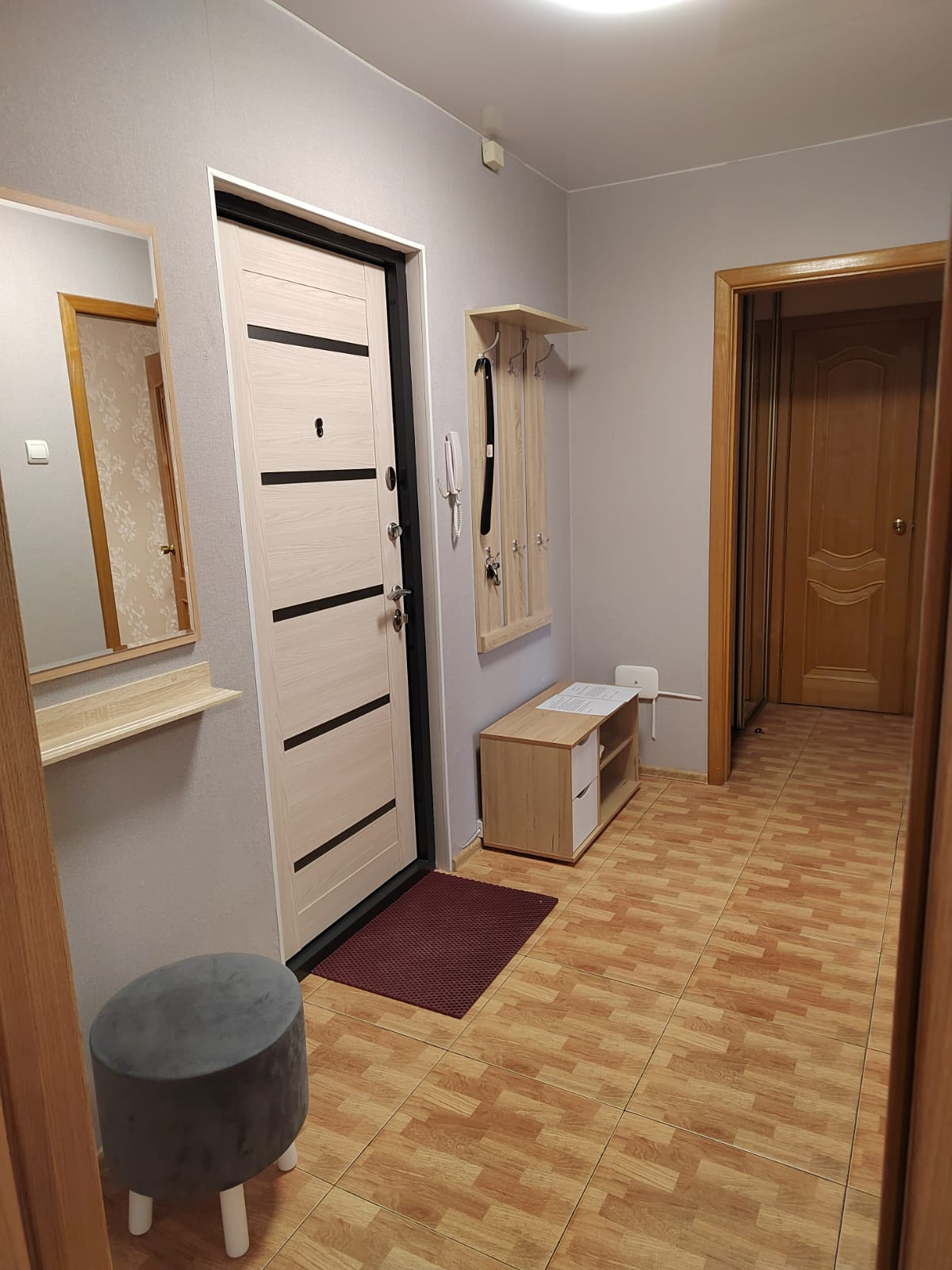 Гардеробная, Железная дверь, Линолеум, Межкомнатные двери, Натяжной потолок, Пластиковые окна, Стены выровнены