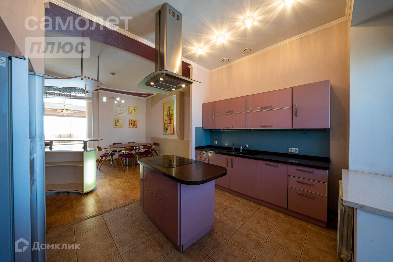 Абсолютно уникальной особенностью этой квартиры является наличие кухни-столовой площадью 28 кв.м., в которой есть барная стойка и остров для приготовления пищи. Здесь вы сможете проводить незабываемые вечера, устраивать встречи с друзьями или просто наслаждаться уютной атмосферой и изысканными блюдами, приготовленными в собственной кухне. Кроме того из кухни можно выйти на уютный балкон с панорамными окнами и наслаждаться как ароматным напитком так и видами города.