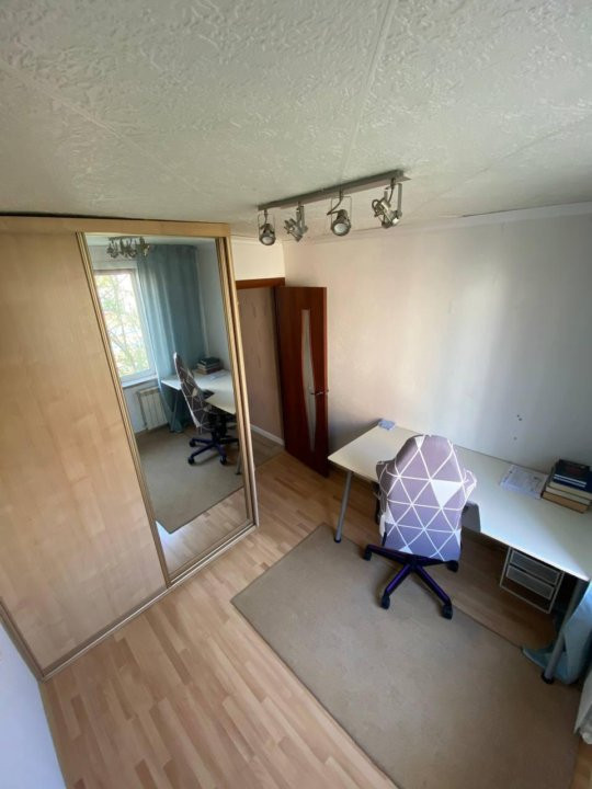 В кабинете находится большой удобный регулируемый стол, игровое кресло, шкаф купе с множеством отделений для хранения одежды и вещей.