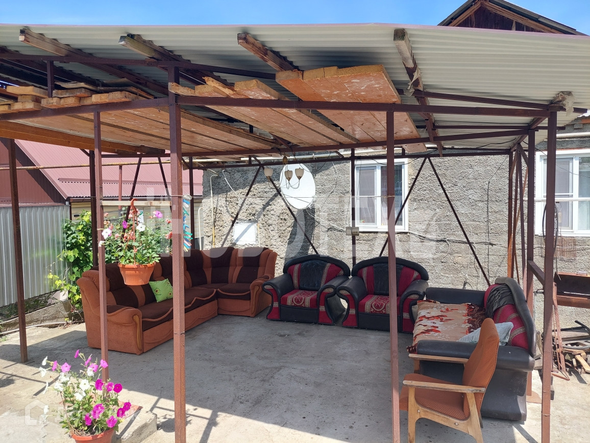 Сзади дома есть навес с зоной для отдыха, где также все залито бетоном и можно выложить плиткой.
