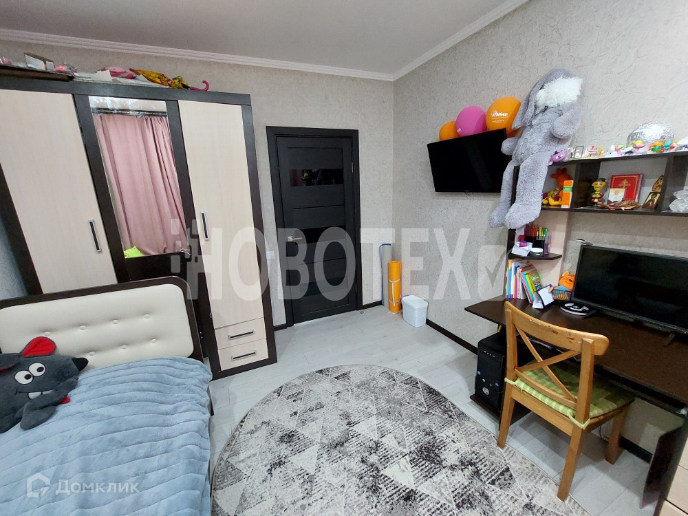 *В детской комнате также сделан фигурный потолок с точечным освещением 11,1 м.кв. и хорошие обои на стенах.