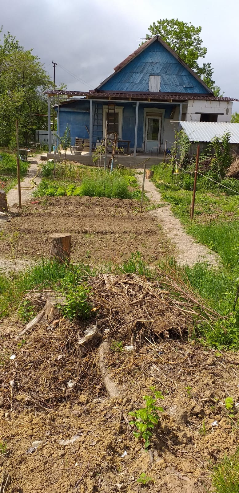 Участок 6 соток ровный, растет много фруктовых деревьев и кустарников, посажено несколько сортов винограда.
