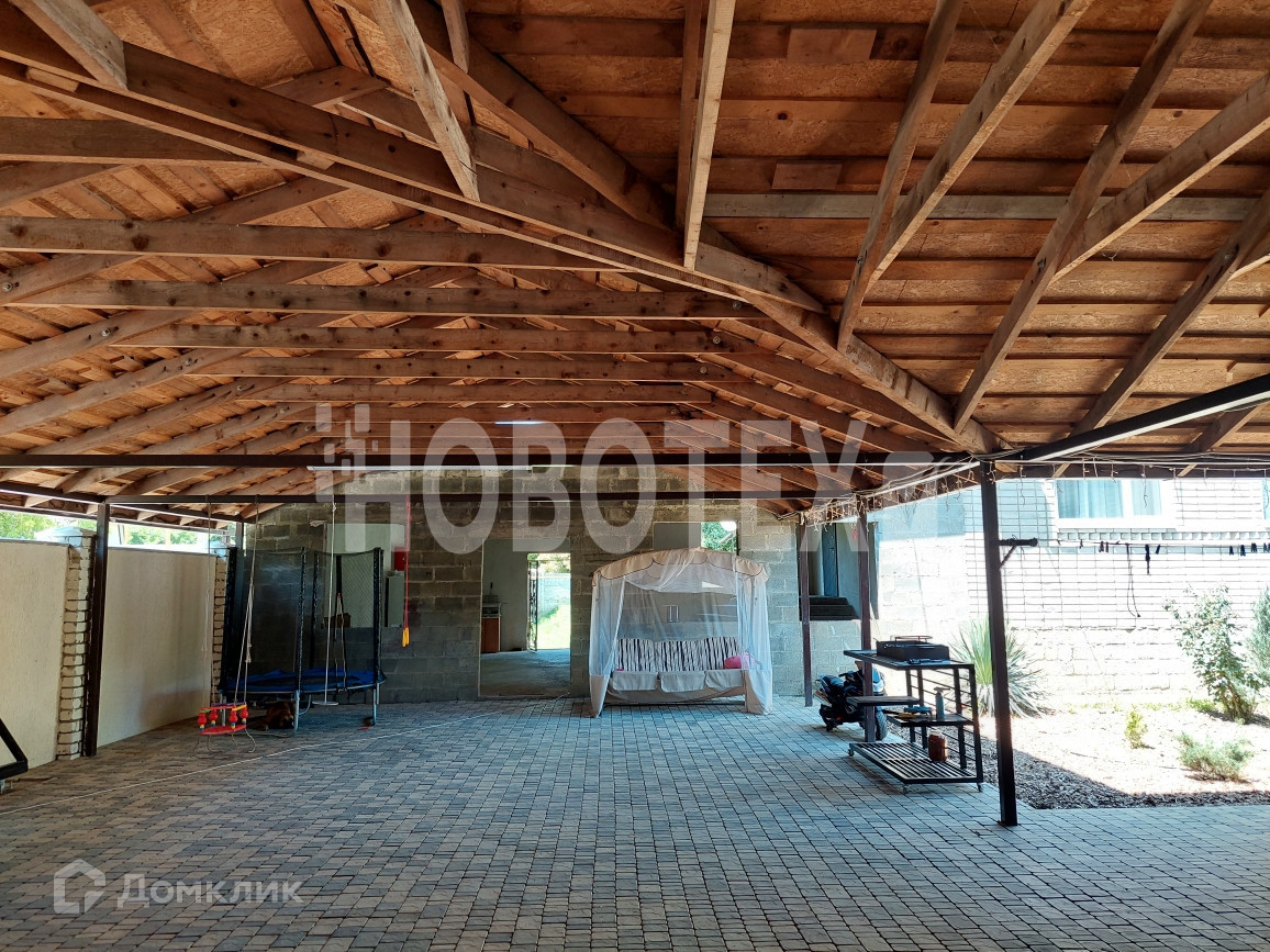 Перед домом хорошо благоустроен двор: практически весь накрыт навесом с мягкой кровлей, выложен тротуарной плиткой 300 кв.м. Большой гараж с 2 боксами и мастерской, вольер и курятник.