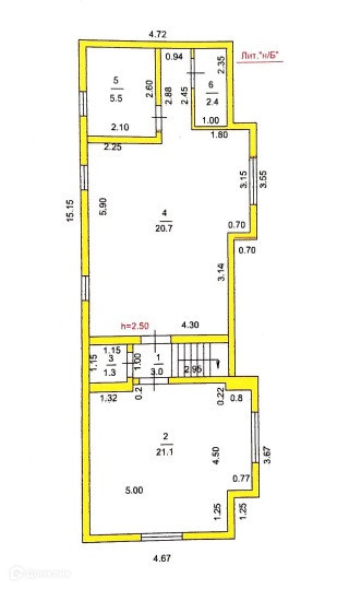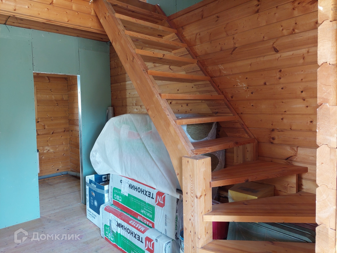На первом этаже 2 жилые комнаты, туалет и лестница на второй этаж в части из бруса,