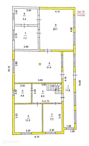 а в части из блока просторная кухня-столовая 21,4 м.кв. , большая жилая комната 20,1 м.кв. или зал, парилка и моечная с туалетом.