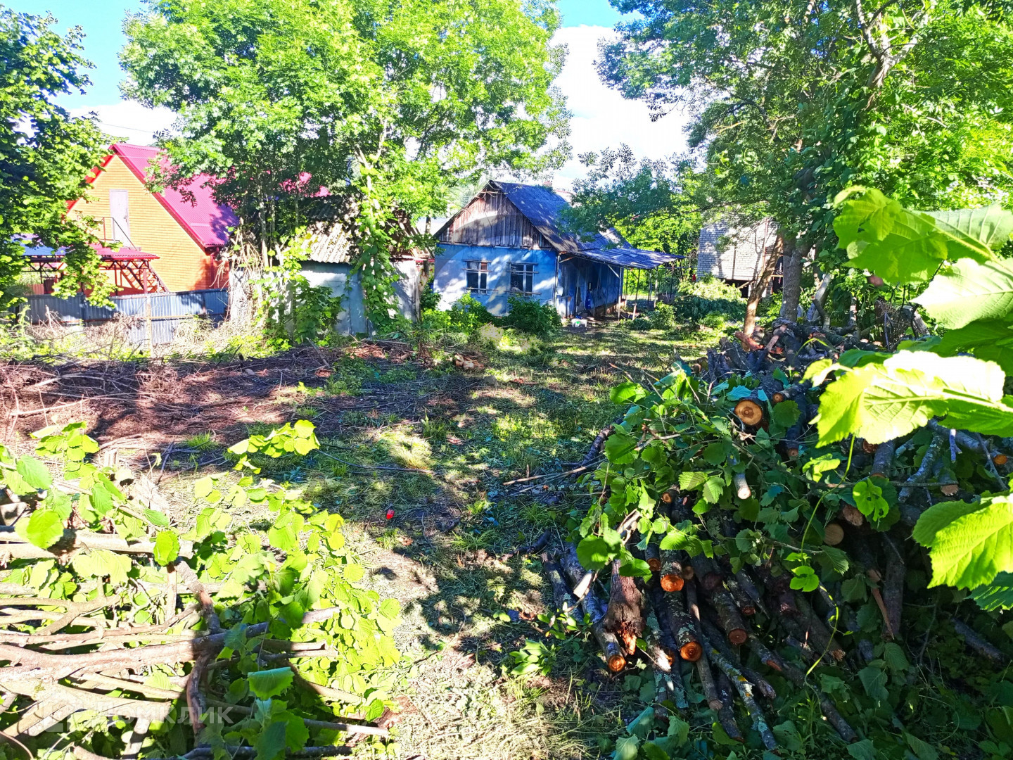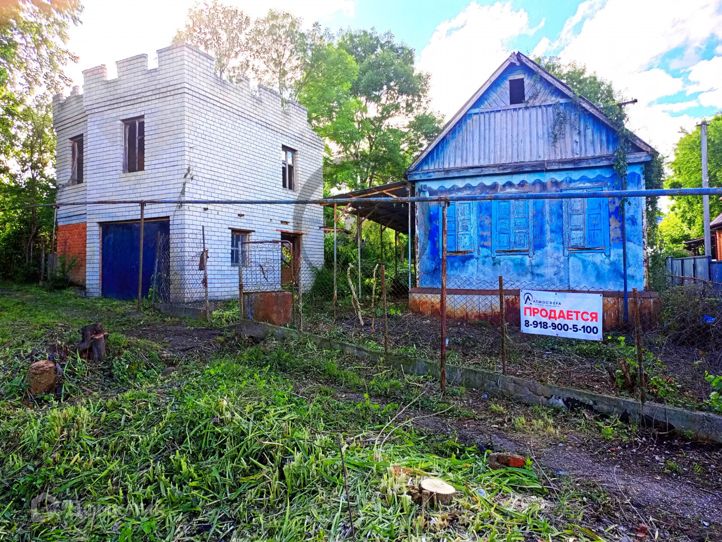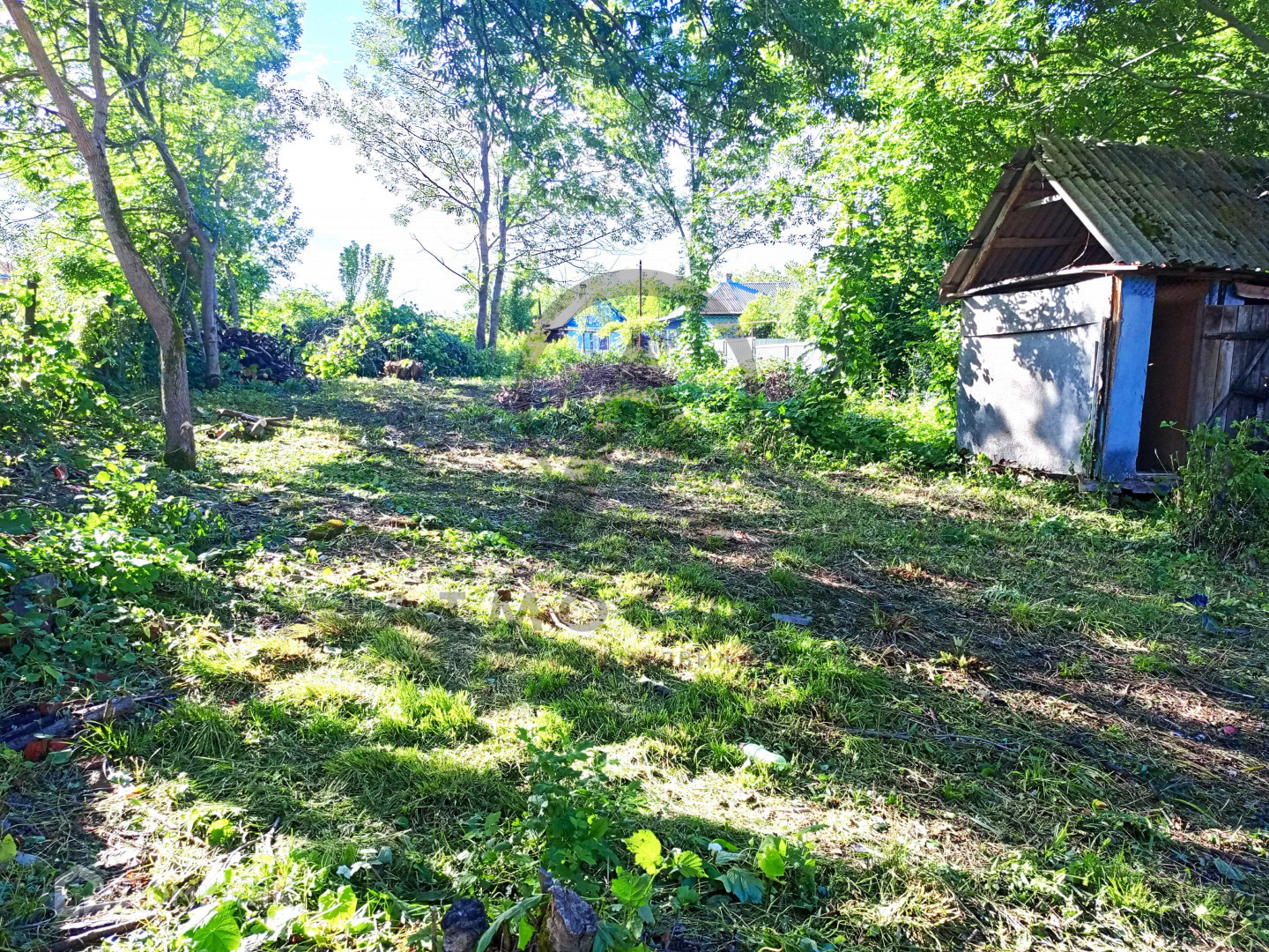 На участке деревянный сарай и двухэтажный  кирпичный гараж, второй этаж не достроен, что позволит вам воплотить свои мечты! Все коммуникации; электричество, газ и вода подведены к участку. Участок отмежеван.