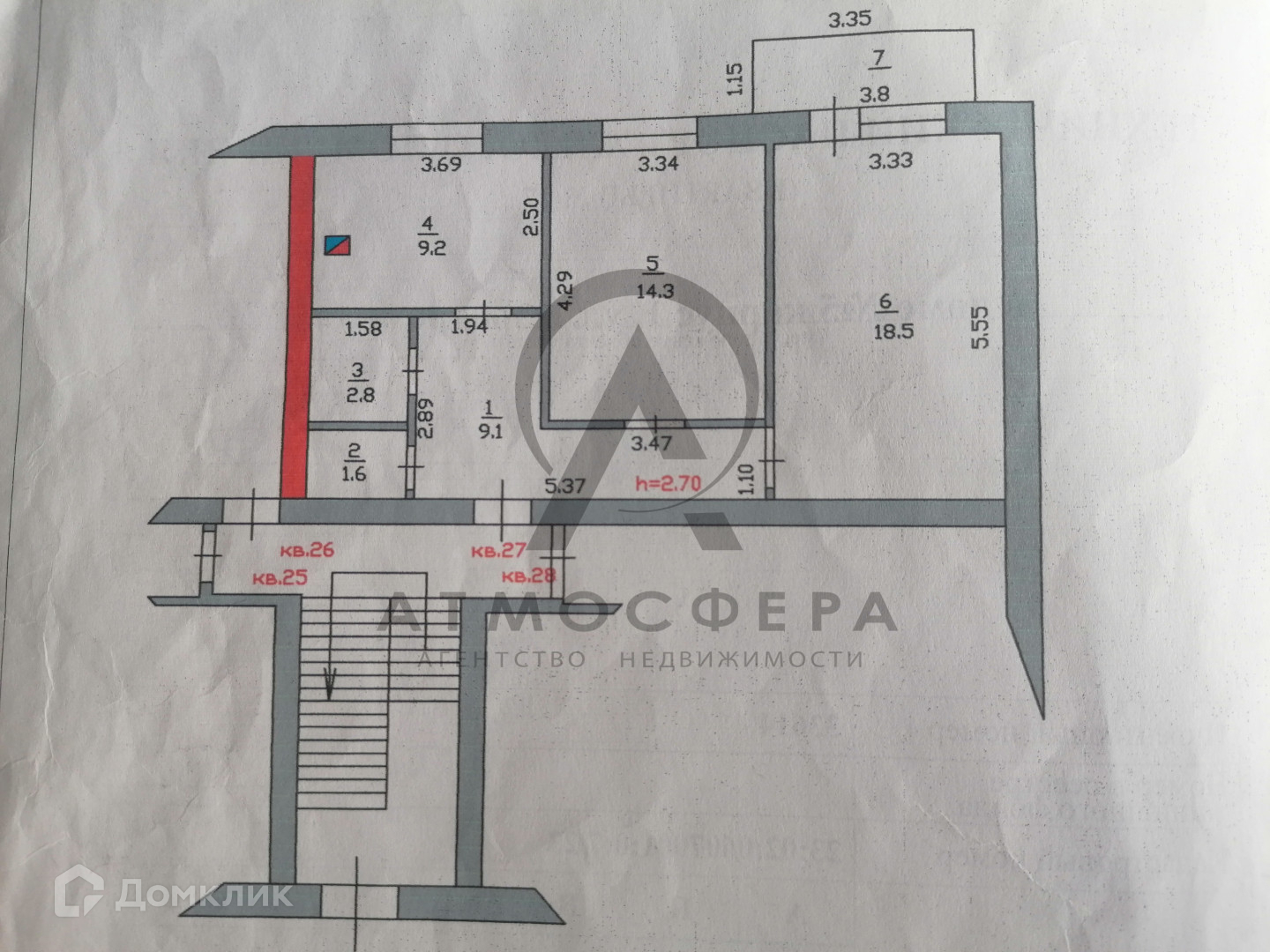 Высота потолков 2.7 м