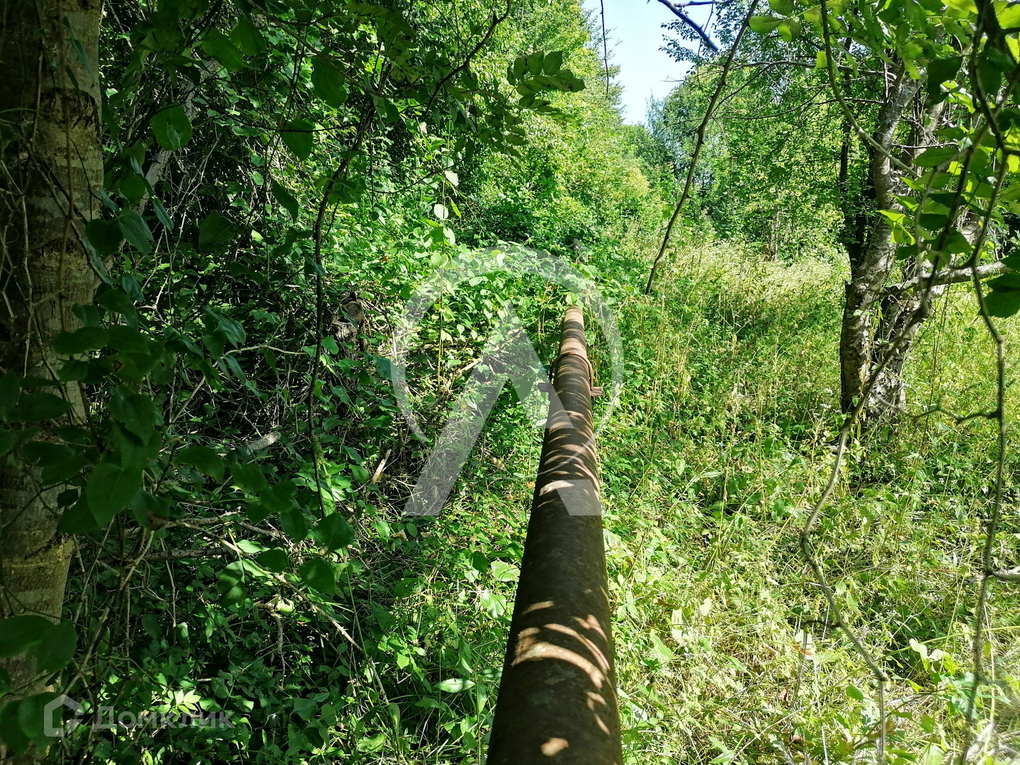 Территория не подтопляемая, свет и вода через дорогу, газ идет по участку (на фото видна труба). Соседей сзади и с левой стороны участка нет, т.к. там лес, с правой стороны участок куплен, но там никто не проживает и не строится.