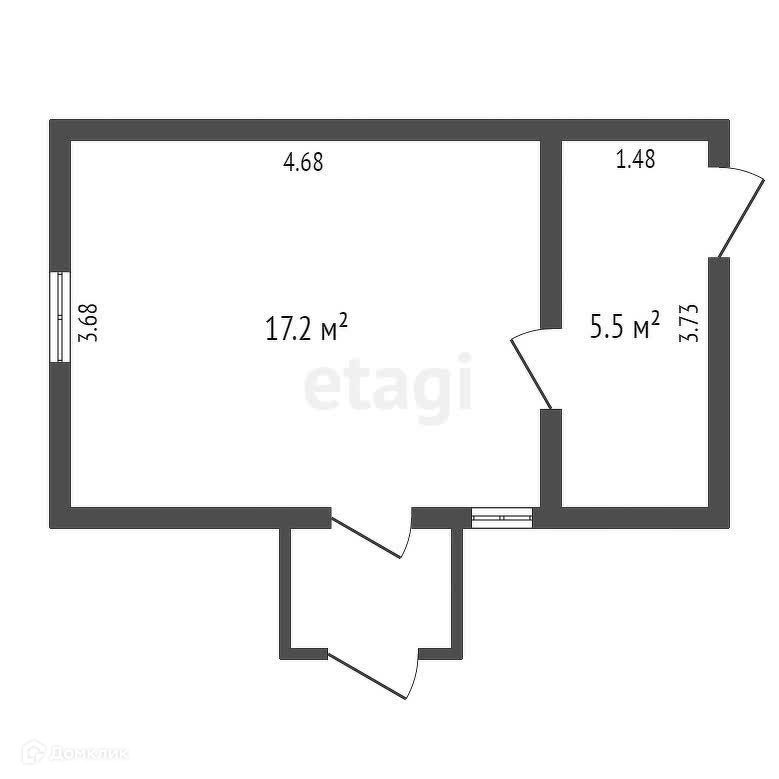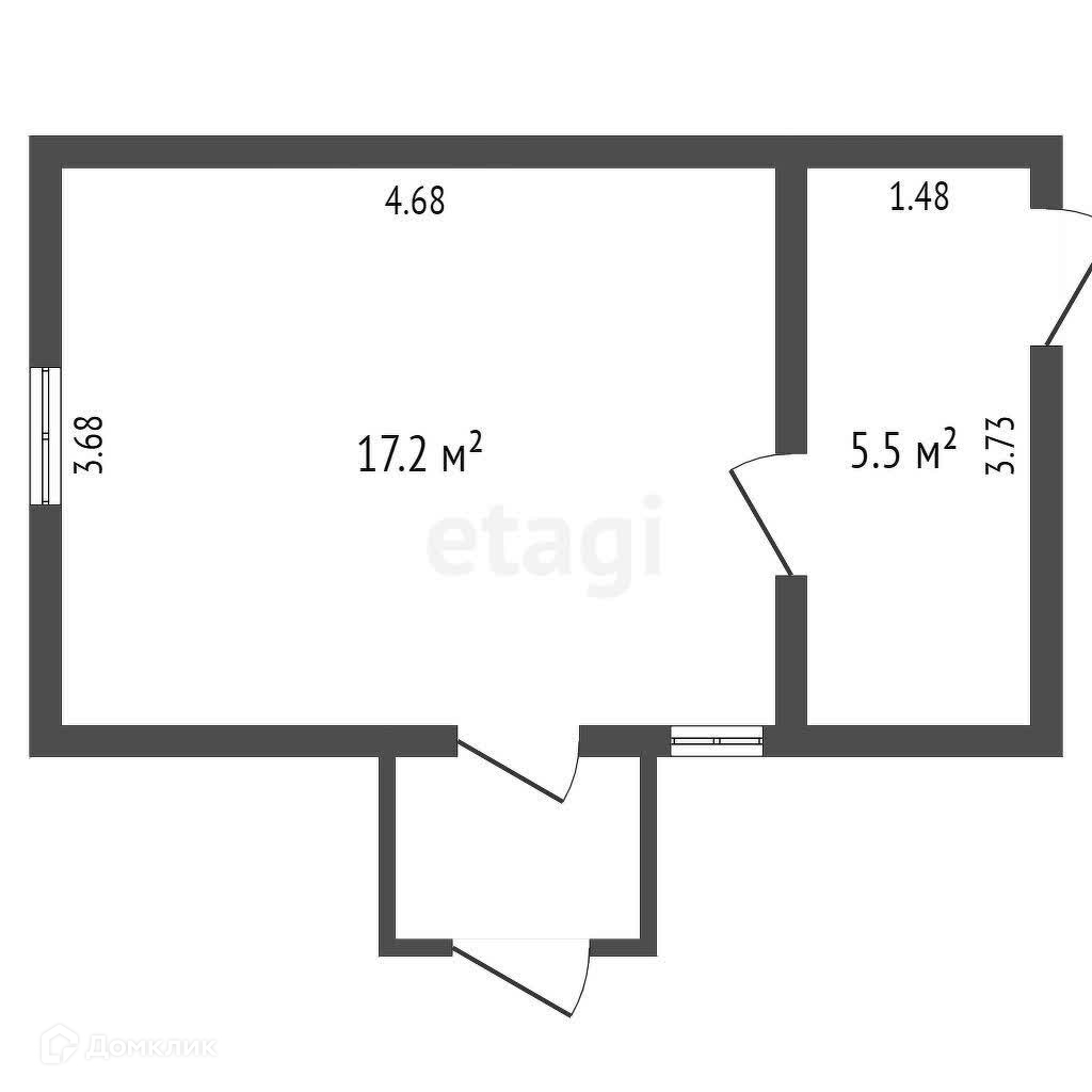 Общая площадь 22.7 м2