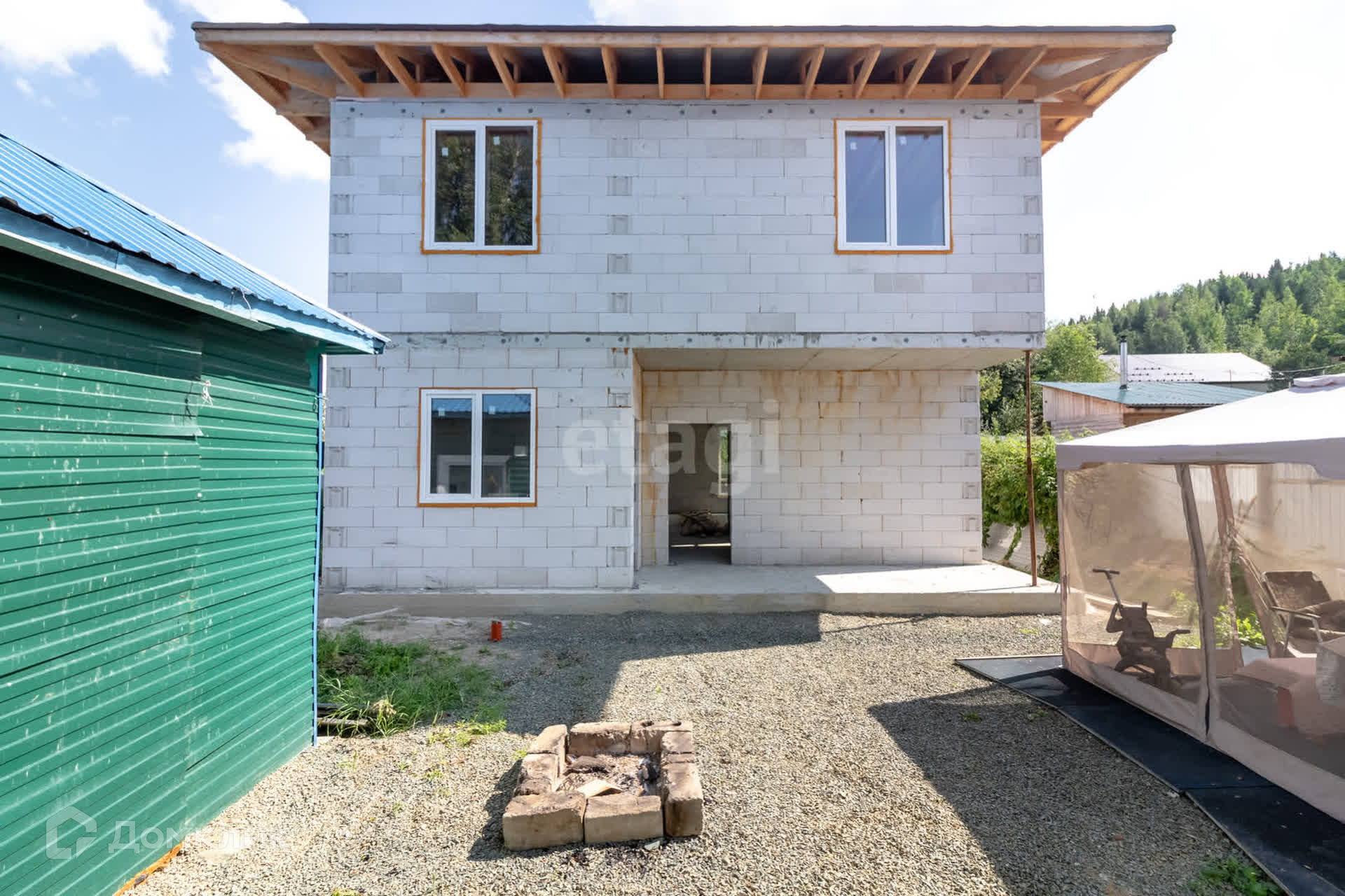 Уважаемые покупатели! Обратите внимание – сразу несколько объектов недвижимости в одном предложении! Основной изюминкой является недостроенный двухэтажный коттедж. Строительством занималась фирма Грандстрой от проекта и до завершения строительства. ООО Грандстрои имеет большой опыт строительства частных домов, все этапы работы фиксируются в договоре и имеется гарантия. Разработана смета отделочных работ. Дом возведён на монолитном фундаменте, стены — газобетон, крыша с мягкой кровлей.