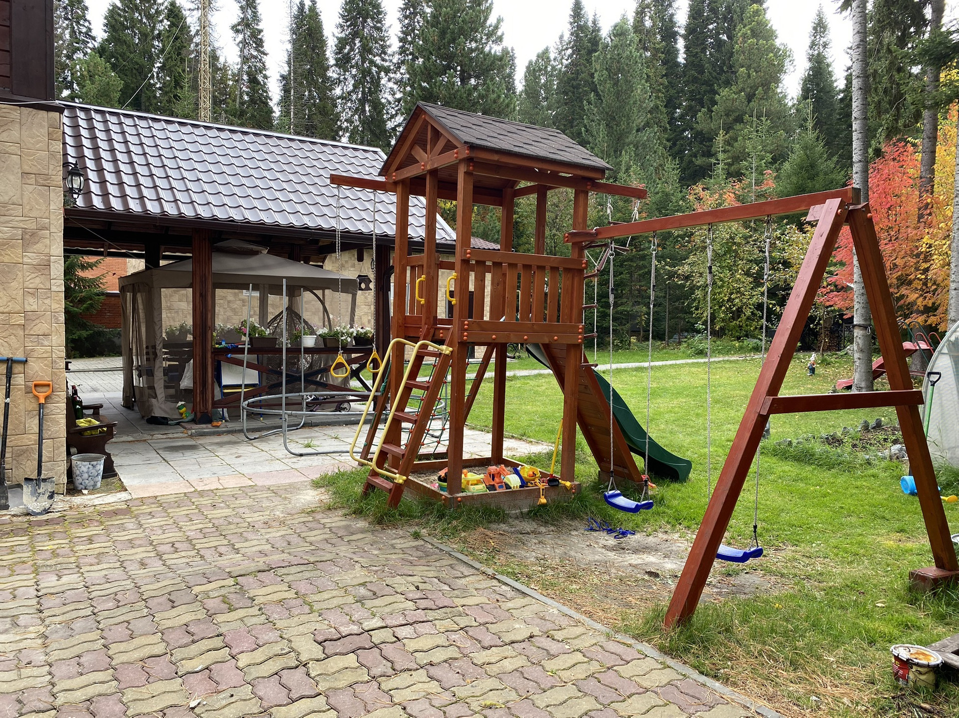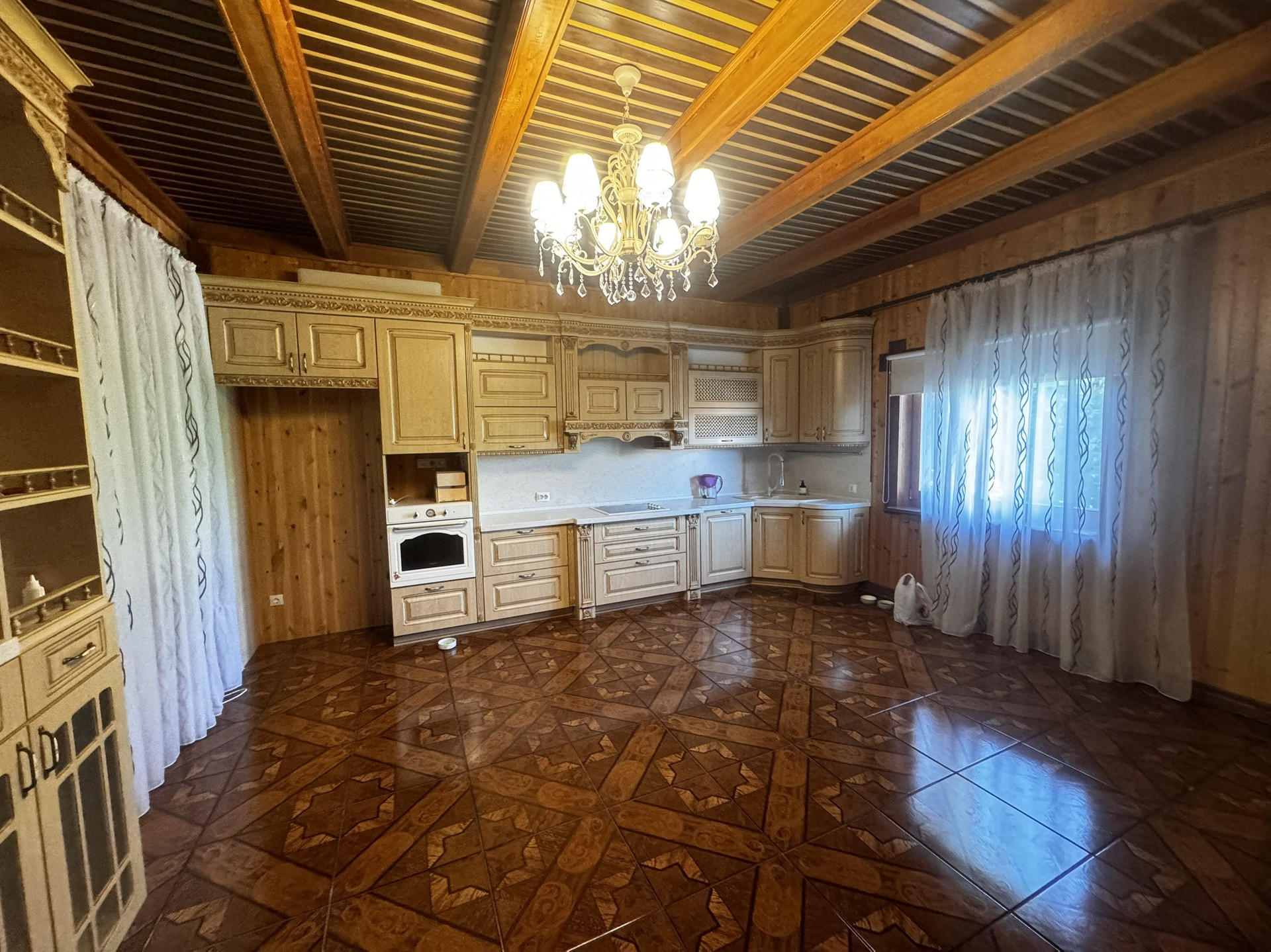 Второй и 3 этаж брус , внутри обшито деревом.
