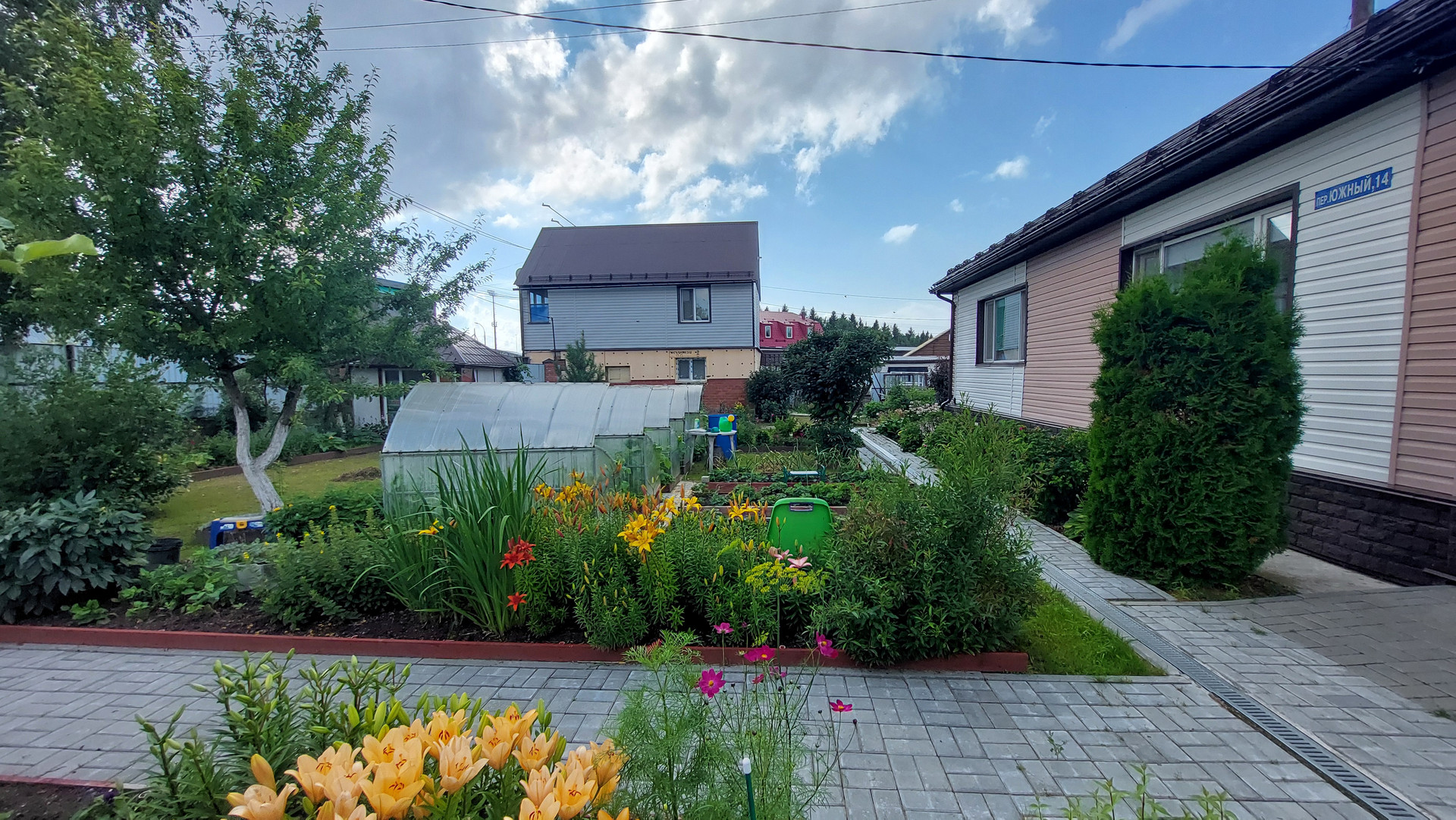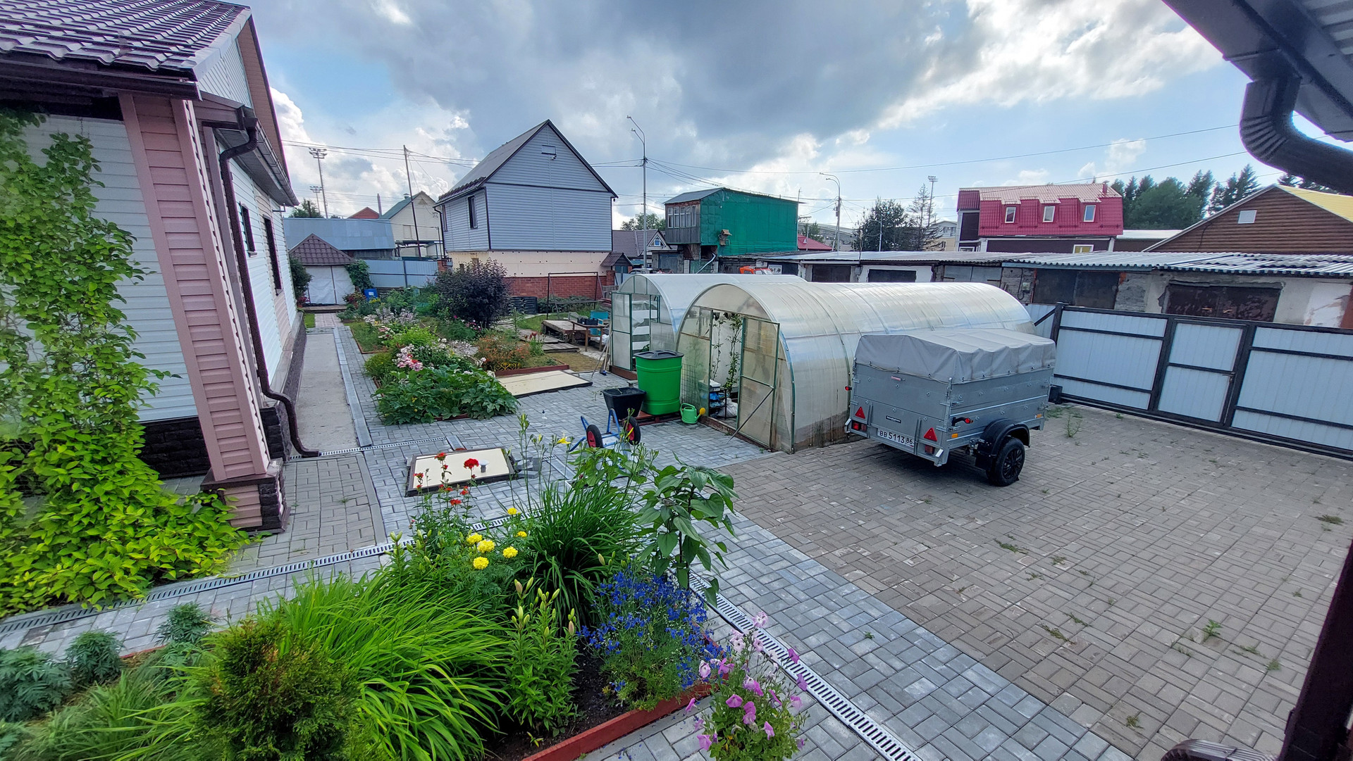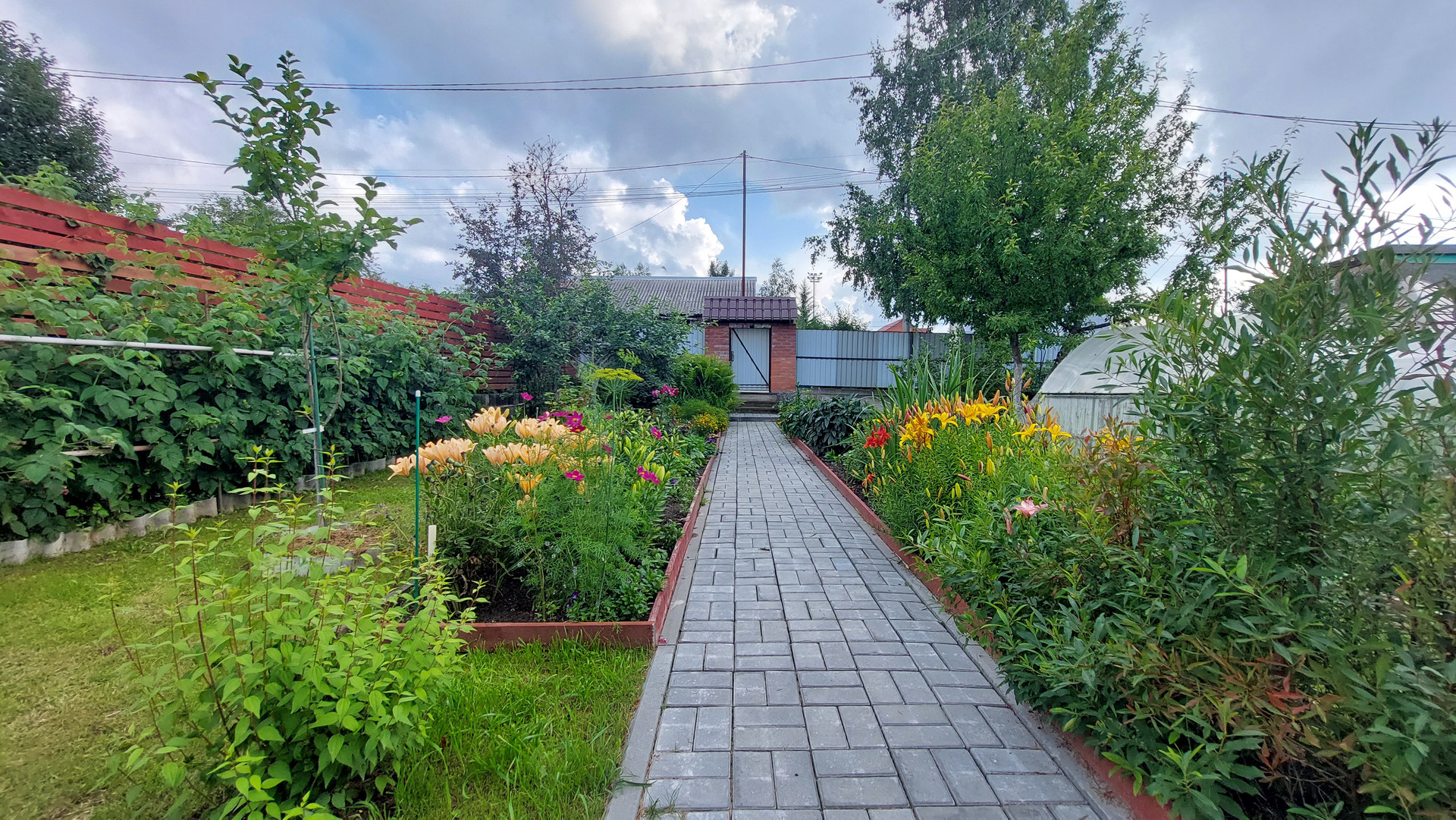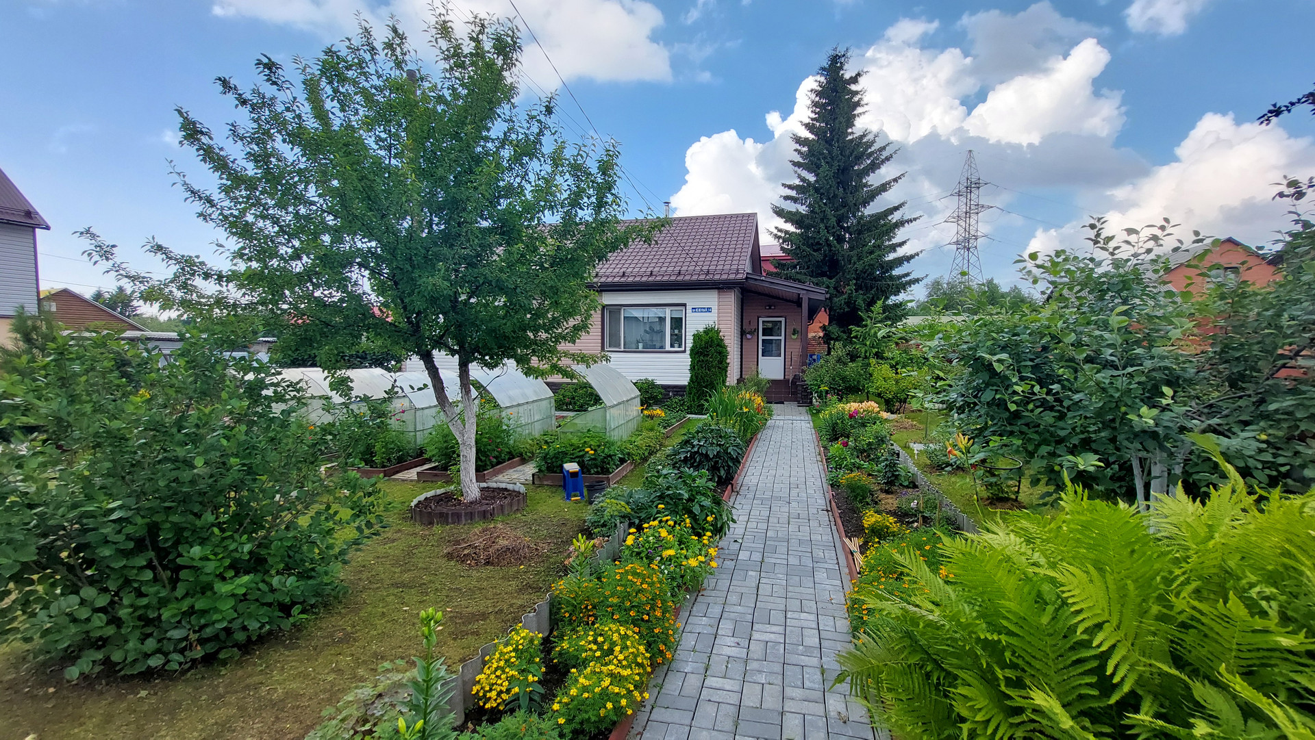 Участок огорожен капитальным забором, площадь участка 1202 кв. м., на нем имеется капитальный гараж на две машины с автоматическими воротами, въезд в гараж осуществляется сразу с асфальтированной дороги, техническая постройка для хранения вещей и мастерская, обустроена беседка для отдыха, две теплицы, многолетние растения, цветы, ягоды, кустарники, деревья.