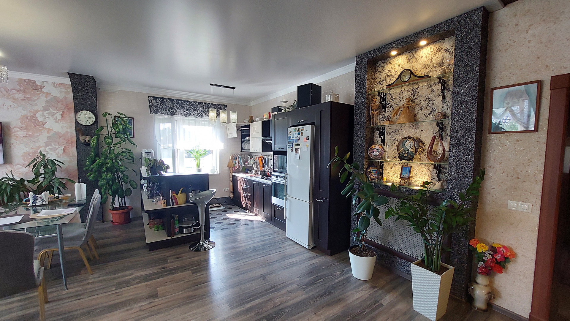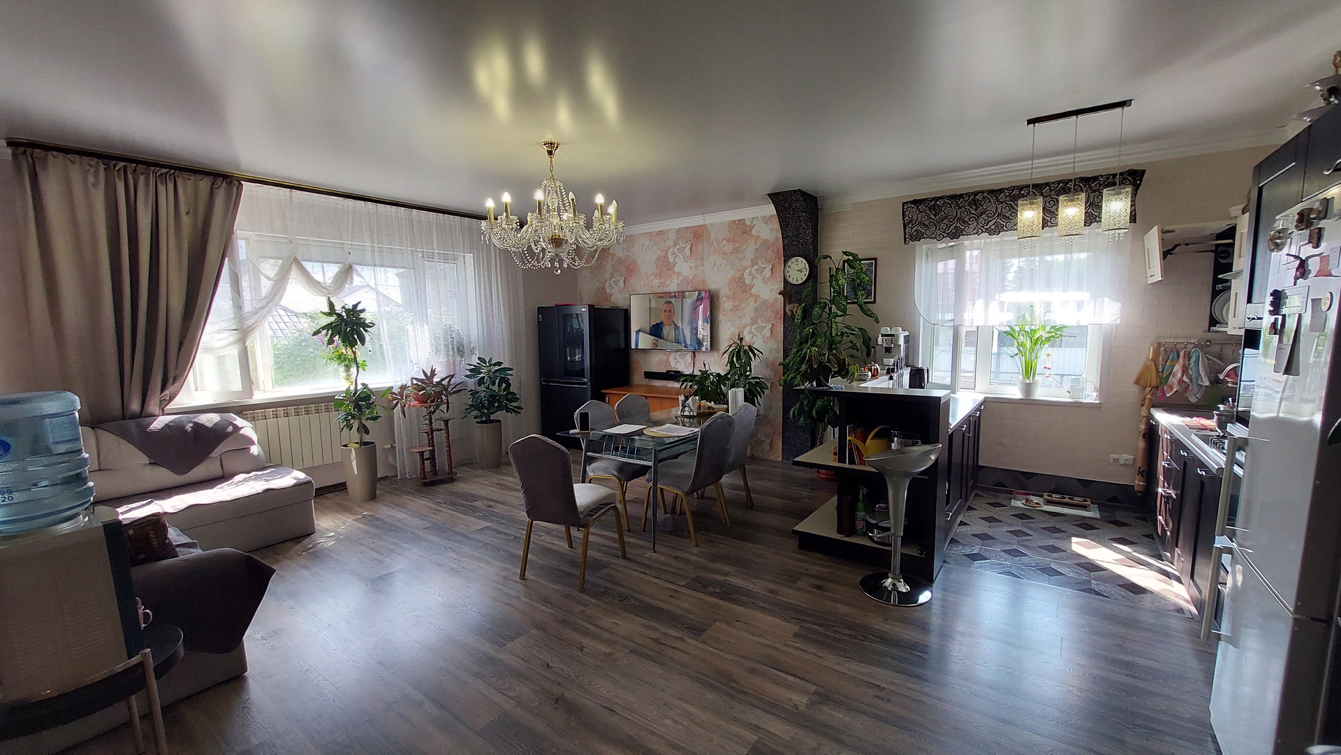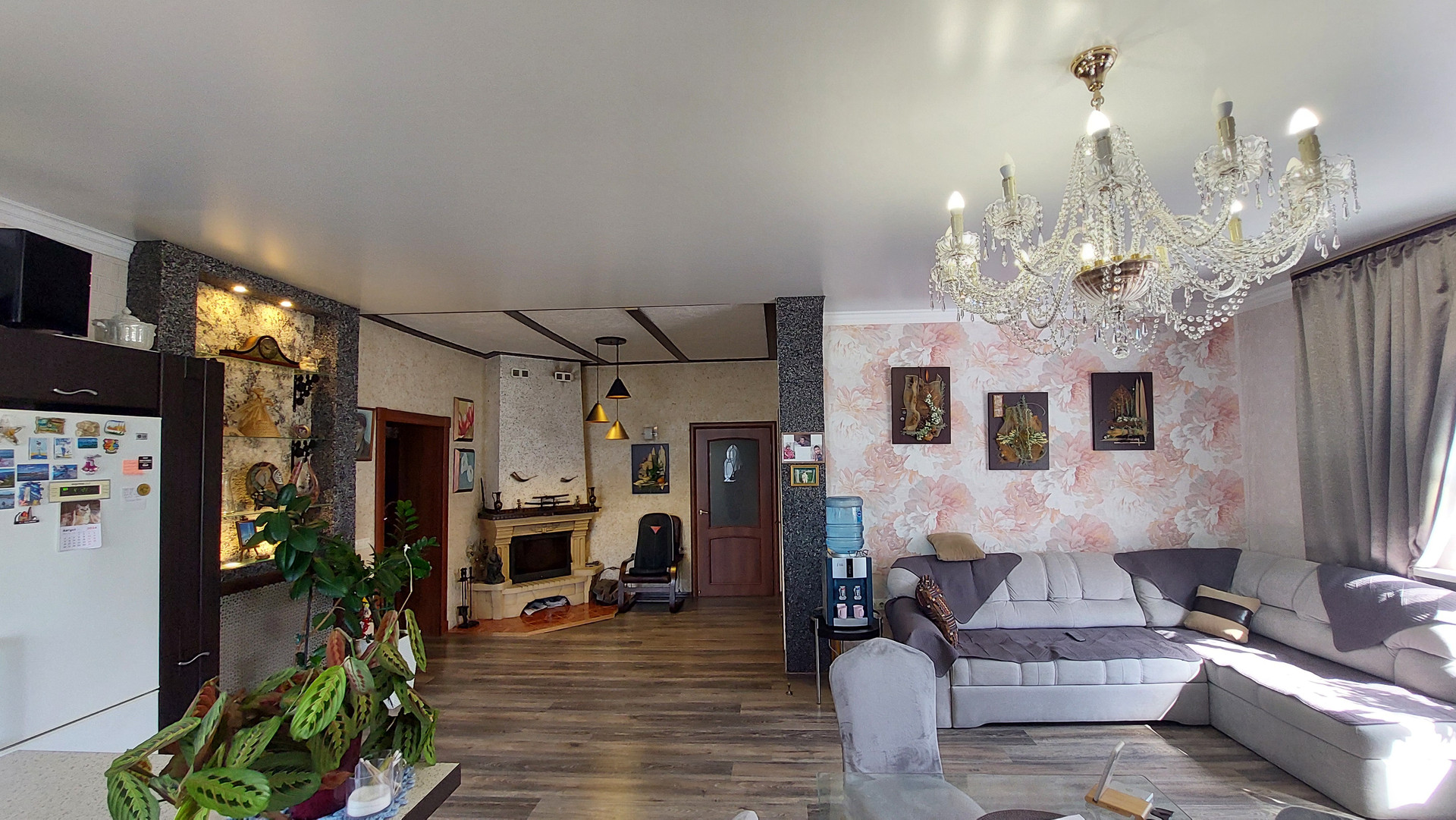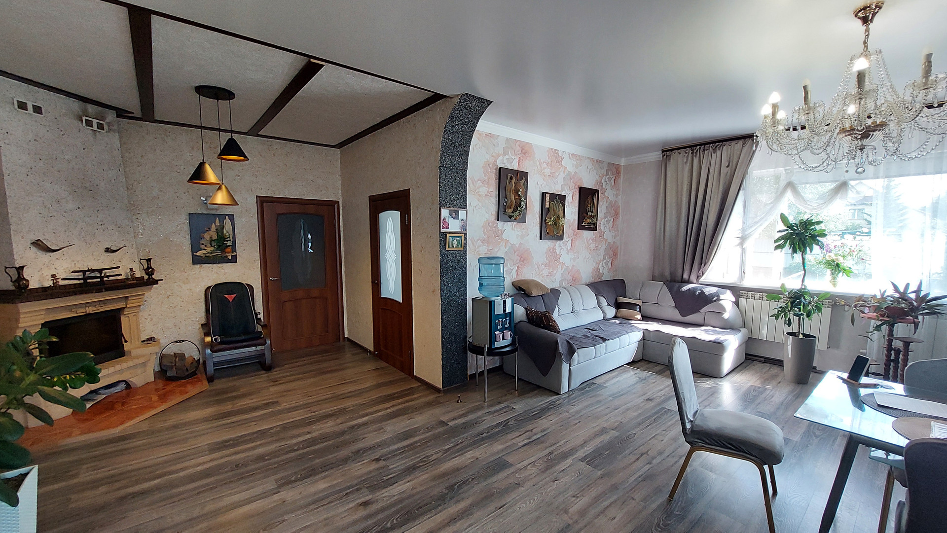 Планировка дома: просторная прихожая, большая кухня-гостиная с функциональными зонами кухни с оборудованным камином на дровах, две комнаты, просторный санузел, окна в доме пластиковые, теплый пол в доме.