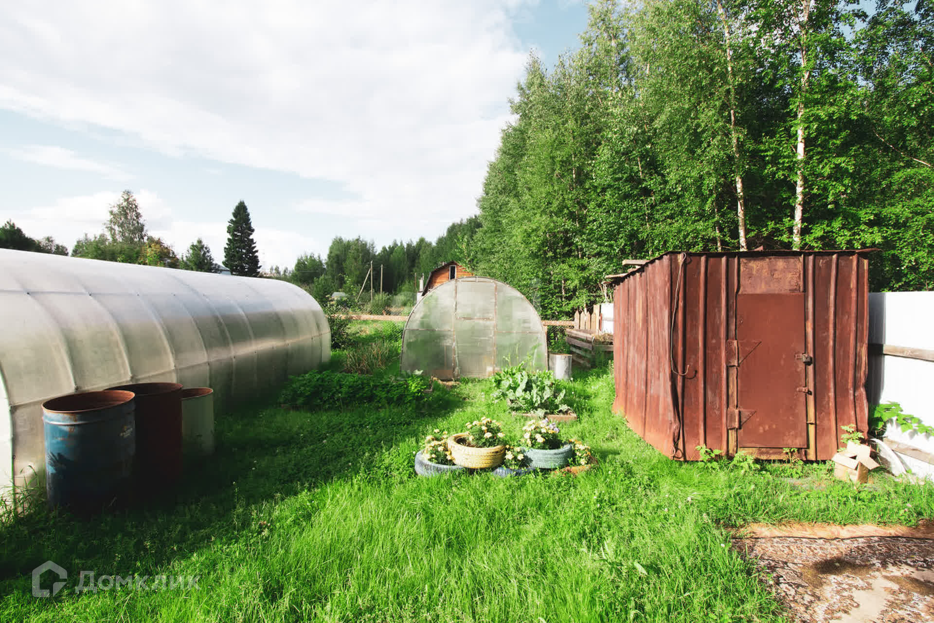 Также на участке расположены: дом, баня, две теплицы 4х3м. и 8х3м. (новая), железный балок для хранения, курятник (утепленный) 1,8х3,4м., туалет (оборудован унитазом), емкость для воды (ориентировочно 5,5 м.куб.).