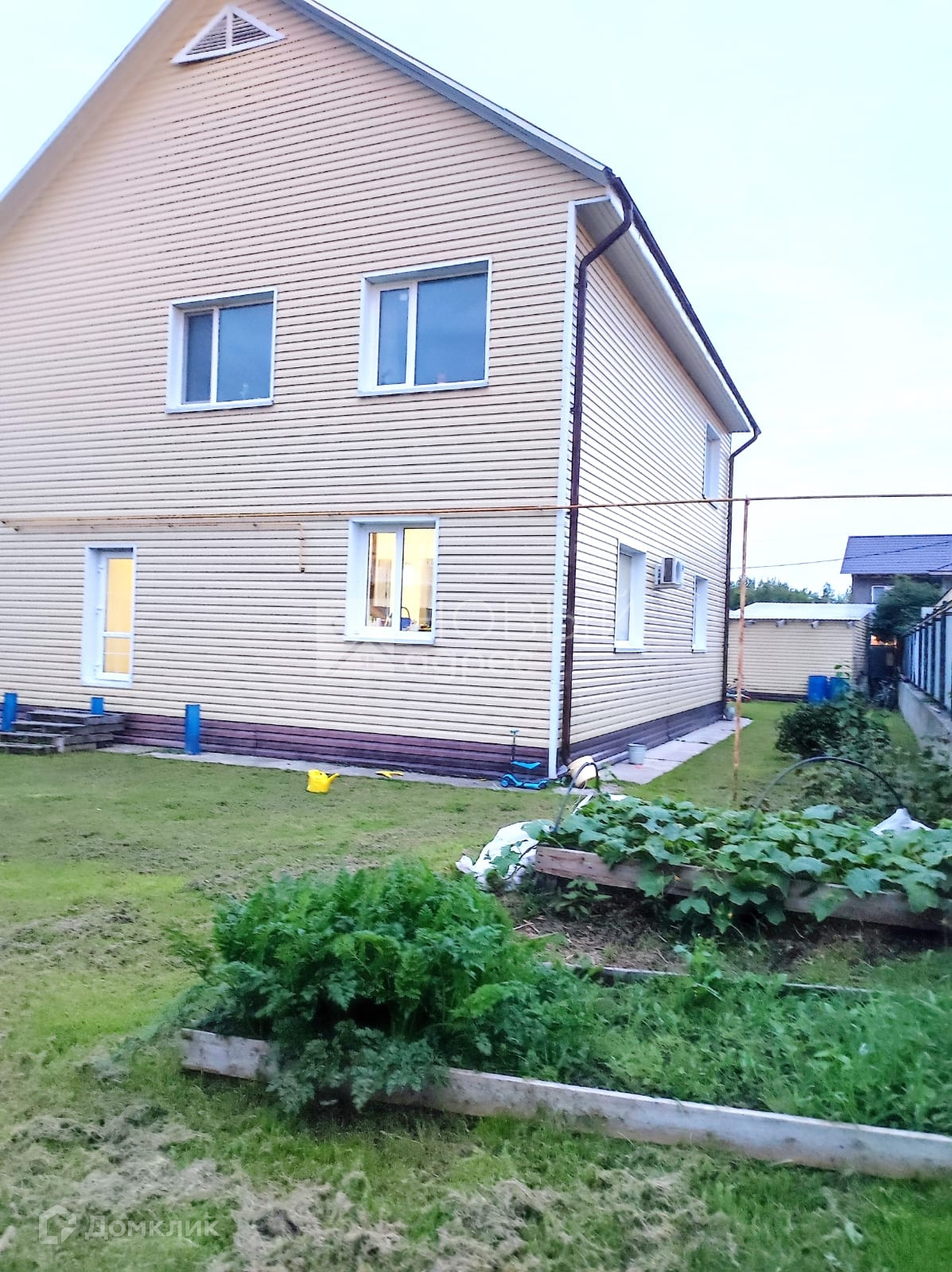 Земельный участок: правильной формы, разработанный. На участке расположена баня, хоз. Помещения, детская площадка. Гараж.