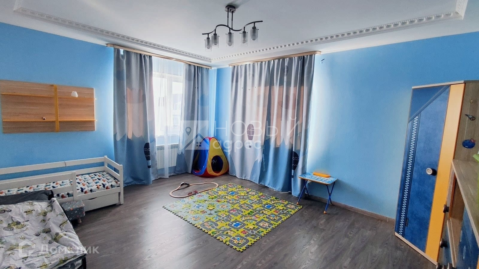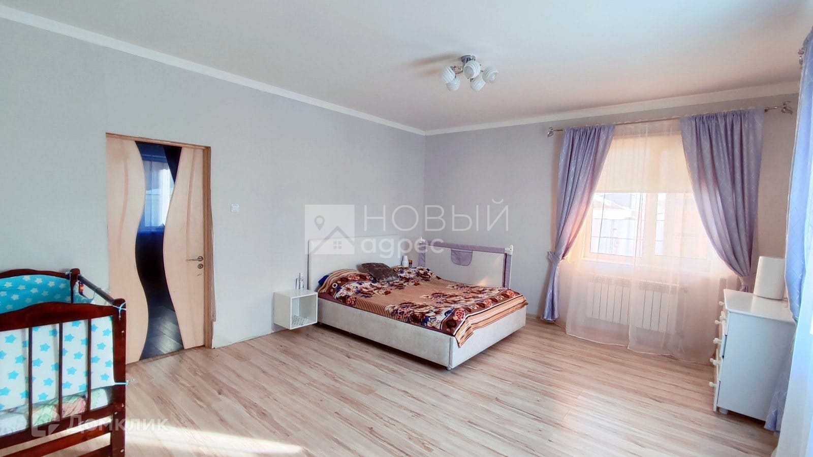 В спальне также ест дополнительная гардеробная 3.3 м². Дом полностью технически оборудован, укомплектован встроенной и корпусной мебелью, готов для проживания.