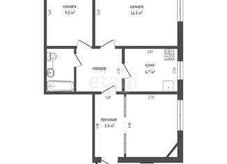 Общая площадь: 56.4 м2