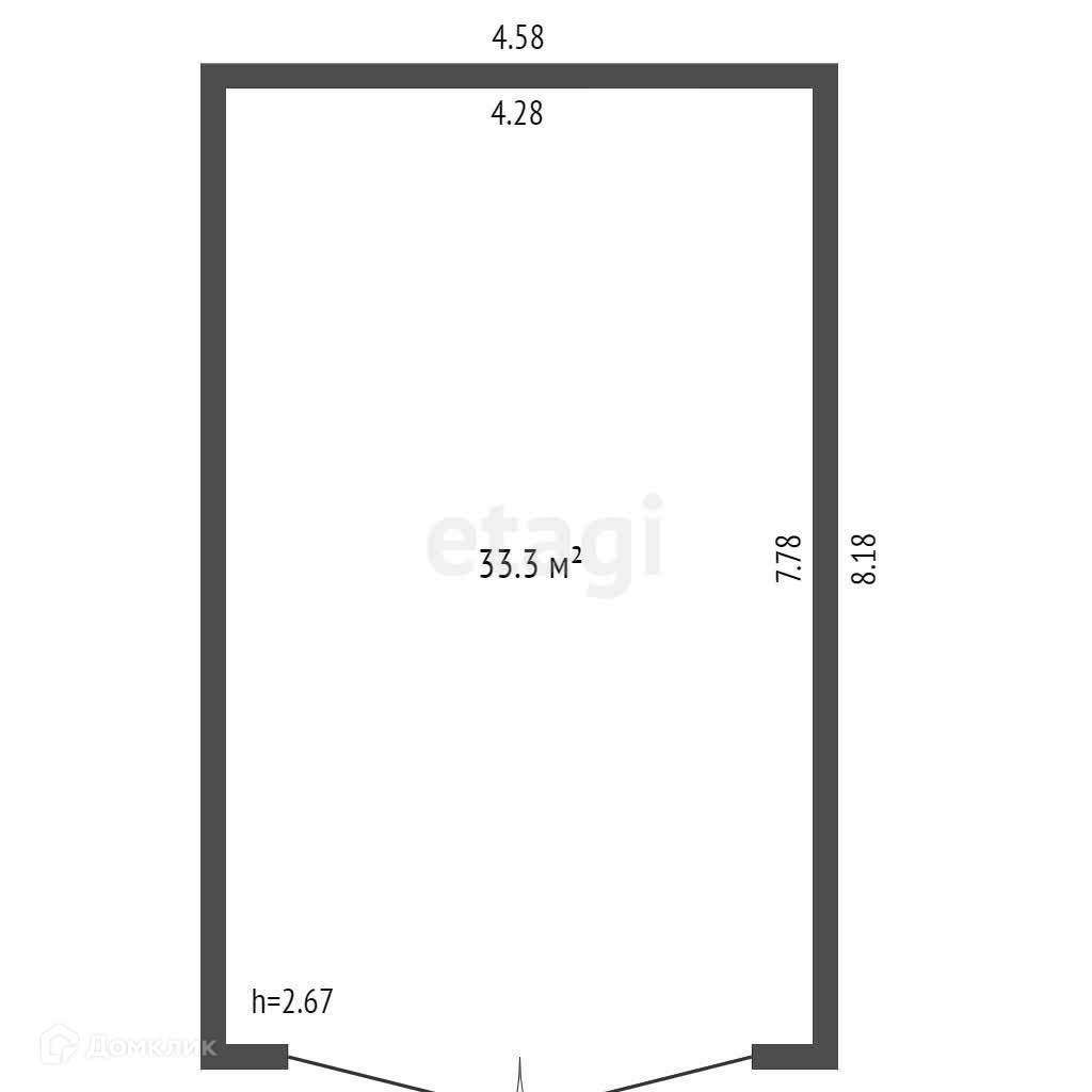Общая площадь 33.3 м2